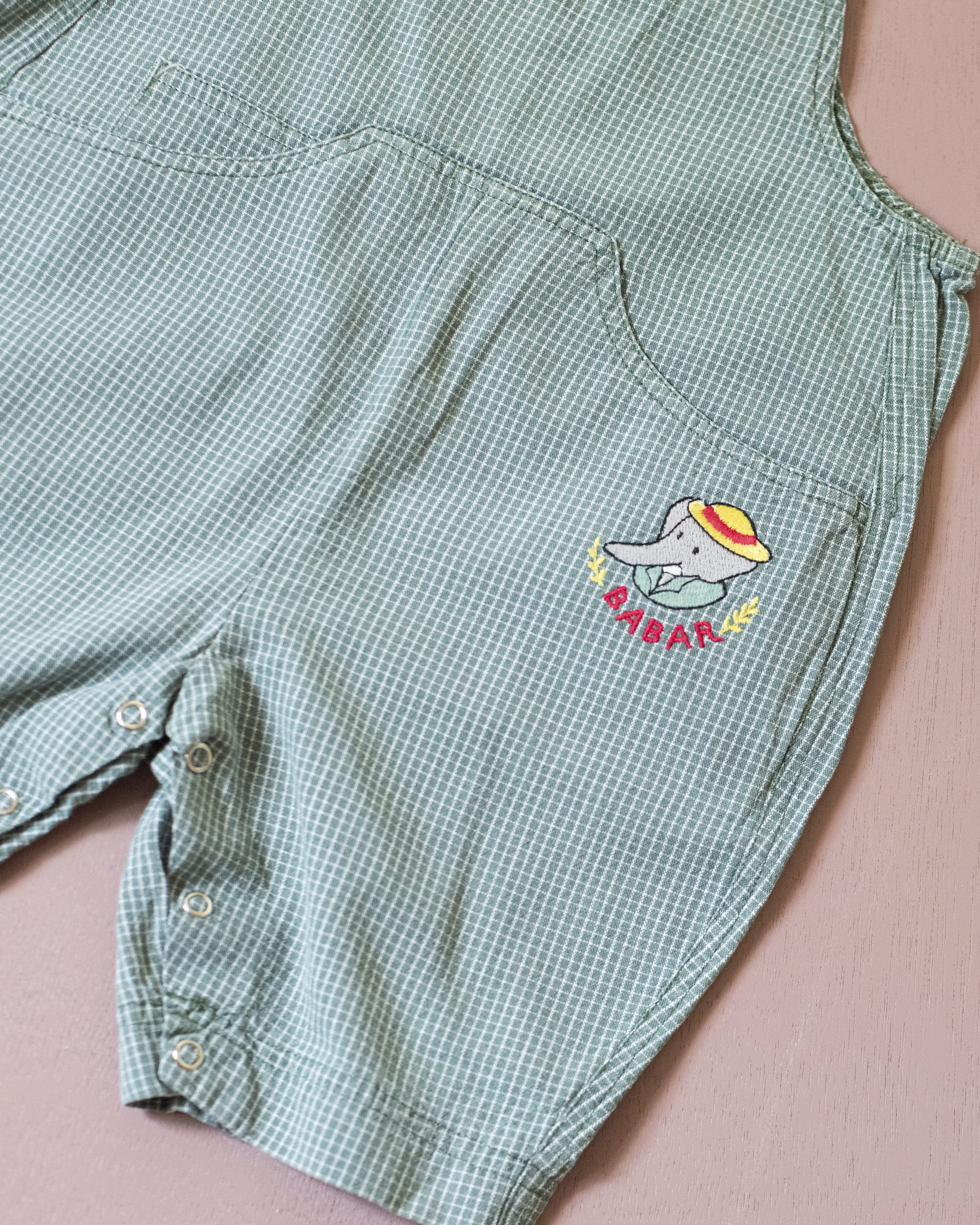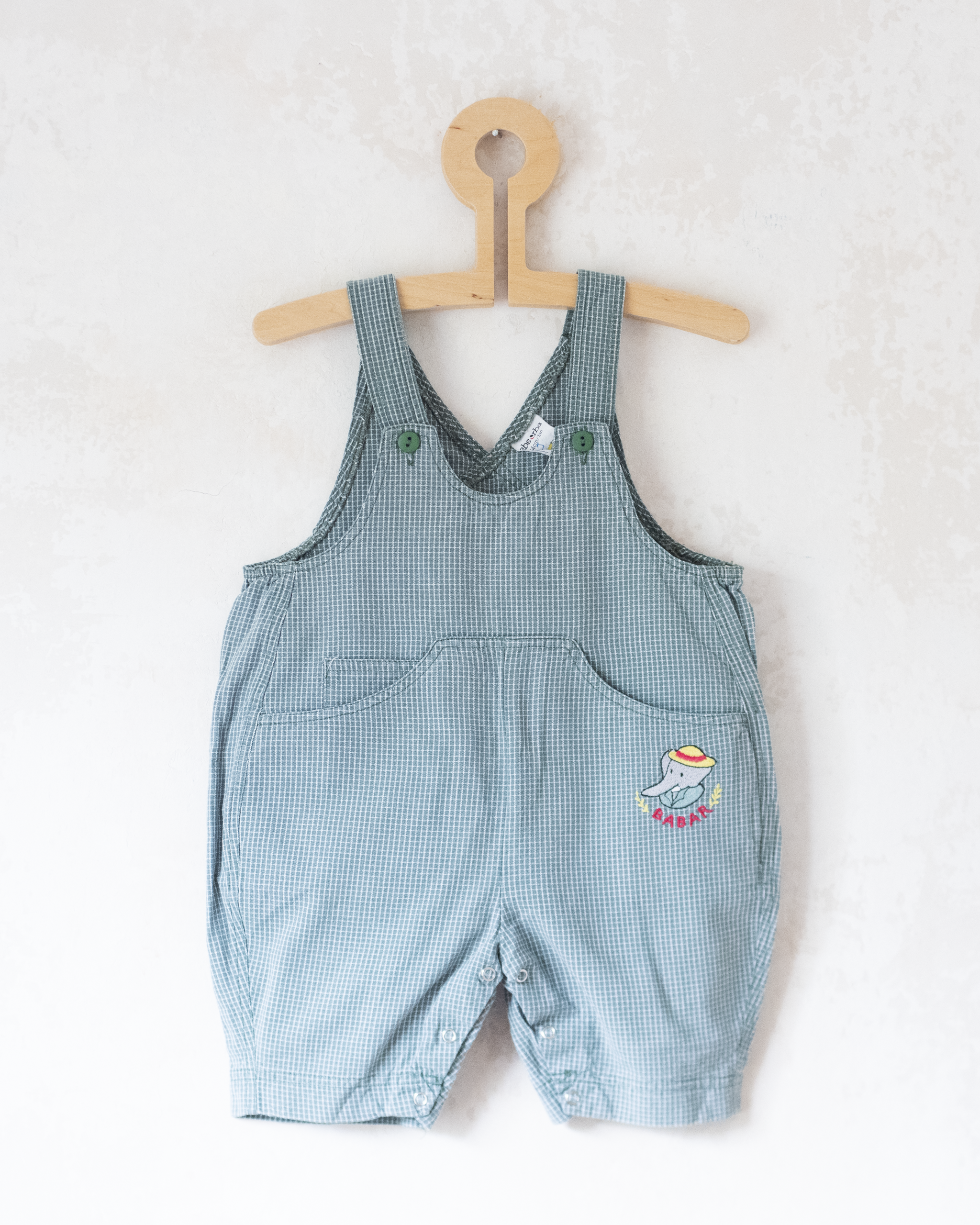 אוברול ירוק משובץ עם רקמה של המלך בבר | 12-18 חודשים