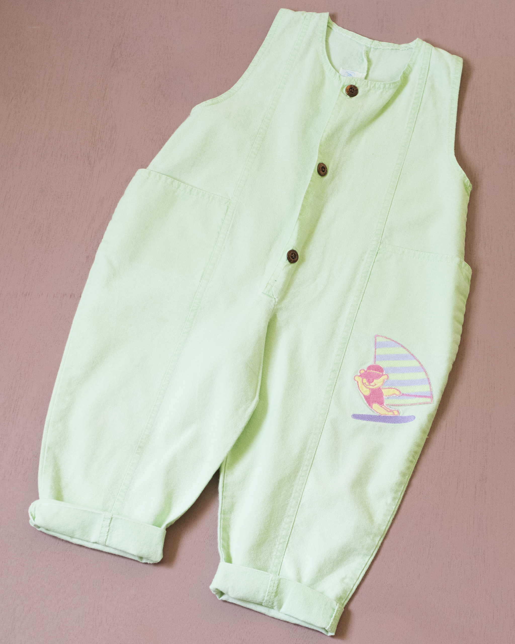 אוברול ירוק בהיר עם רקמת דובי | 2-3 שנים