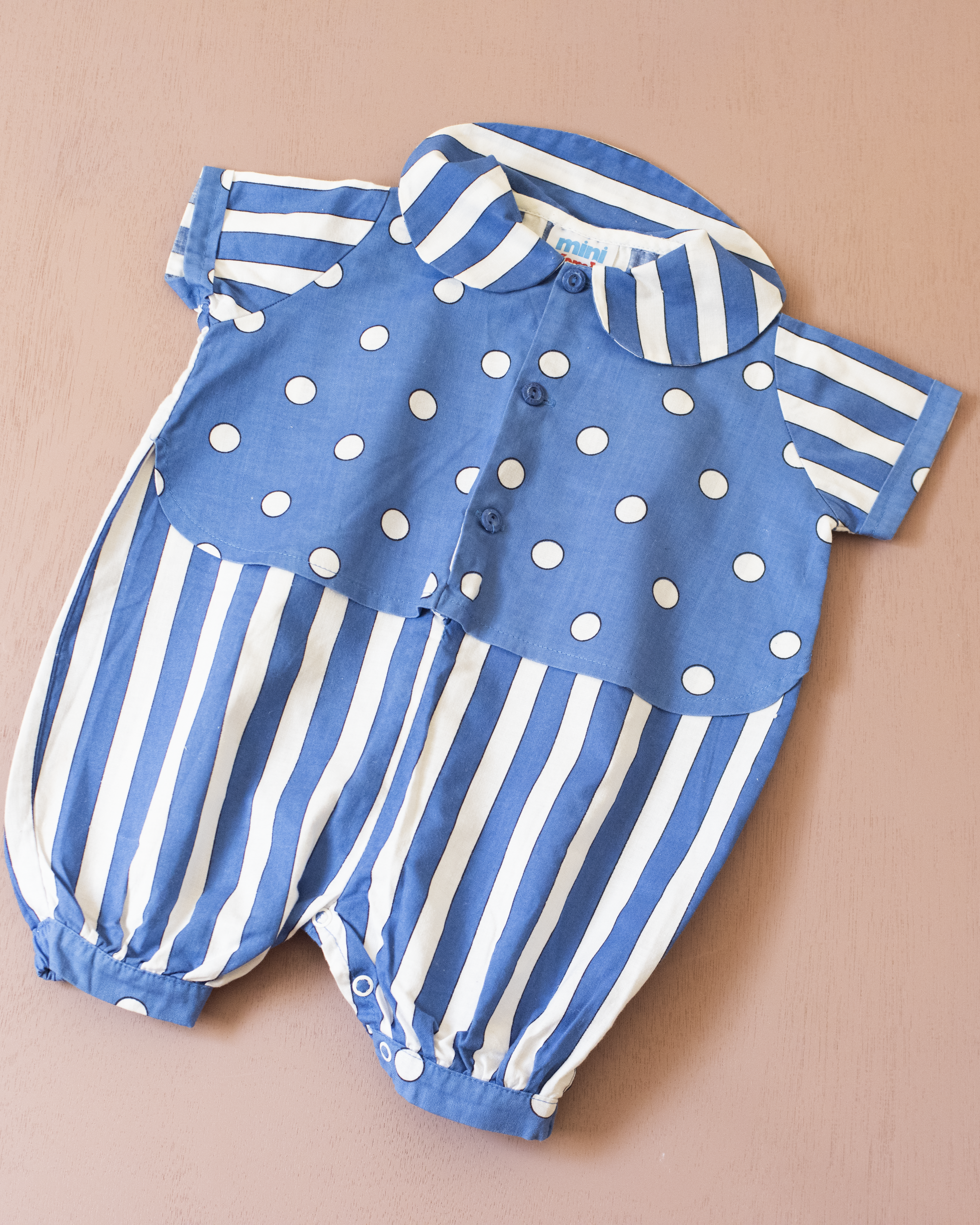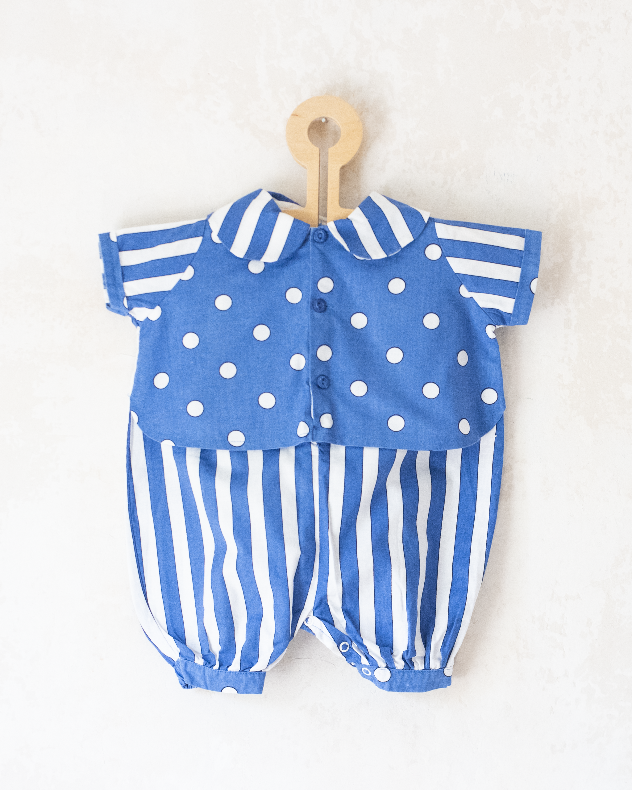 אוברול כחול לבן עם פסים ונקודות | 3-6 חודשים