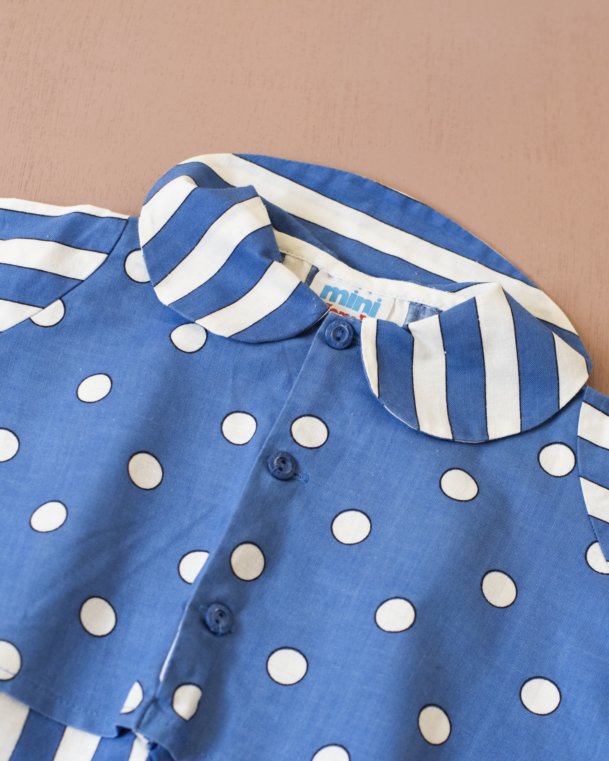 אוברול כחול עם מעויינים | דד סטוק צרפתי מהסבנטיז | 18-24 חודשים