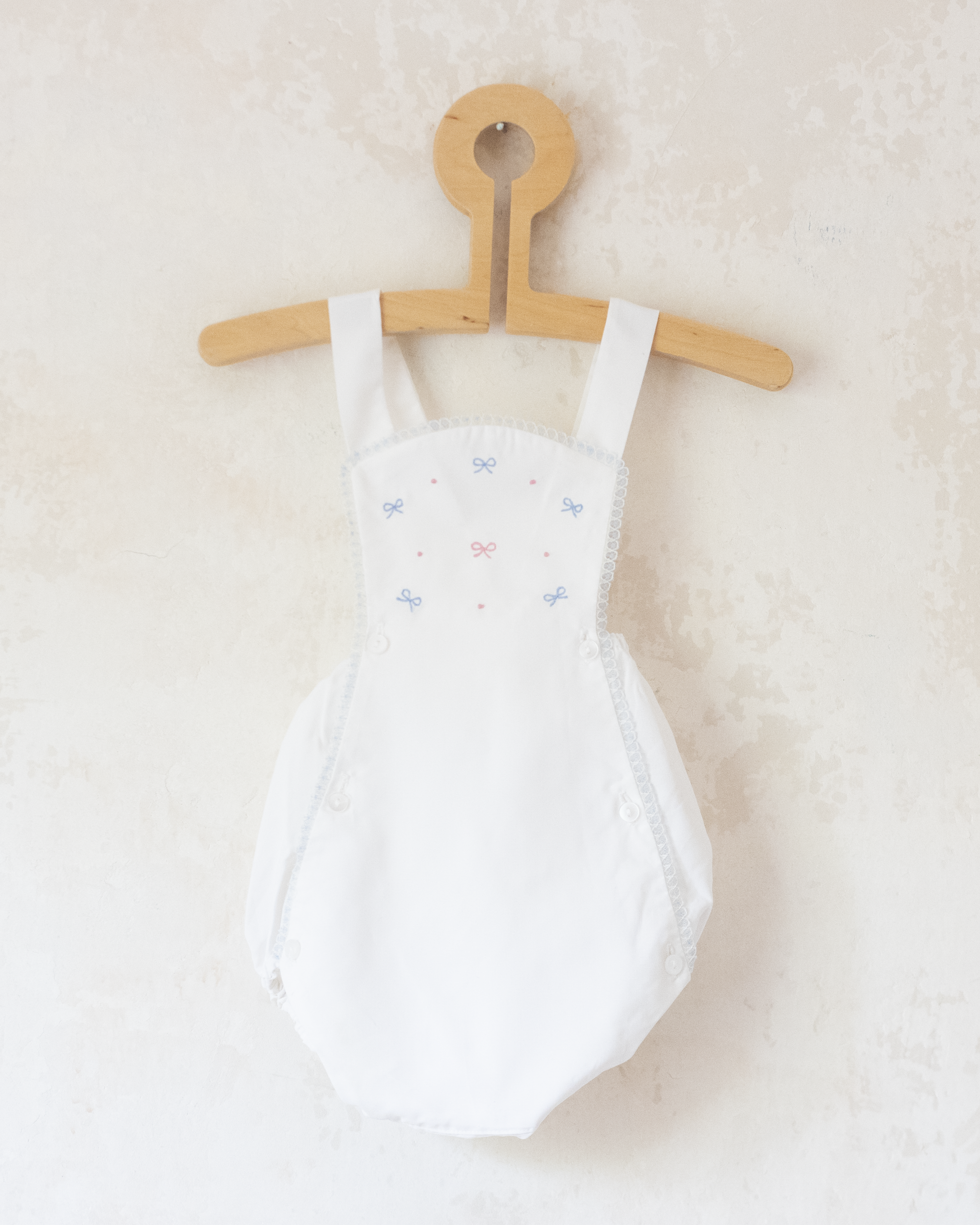 רומפר לבן עם פפיונים רקומים | דד סטוק איטלקי | 9-12 חודשים