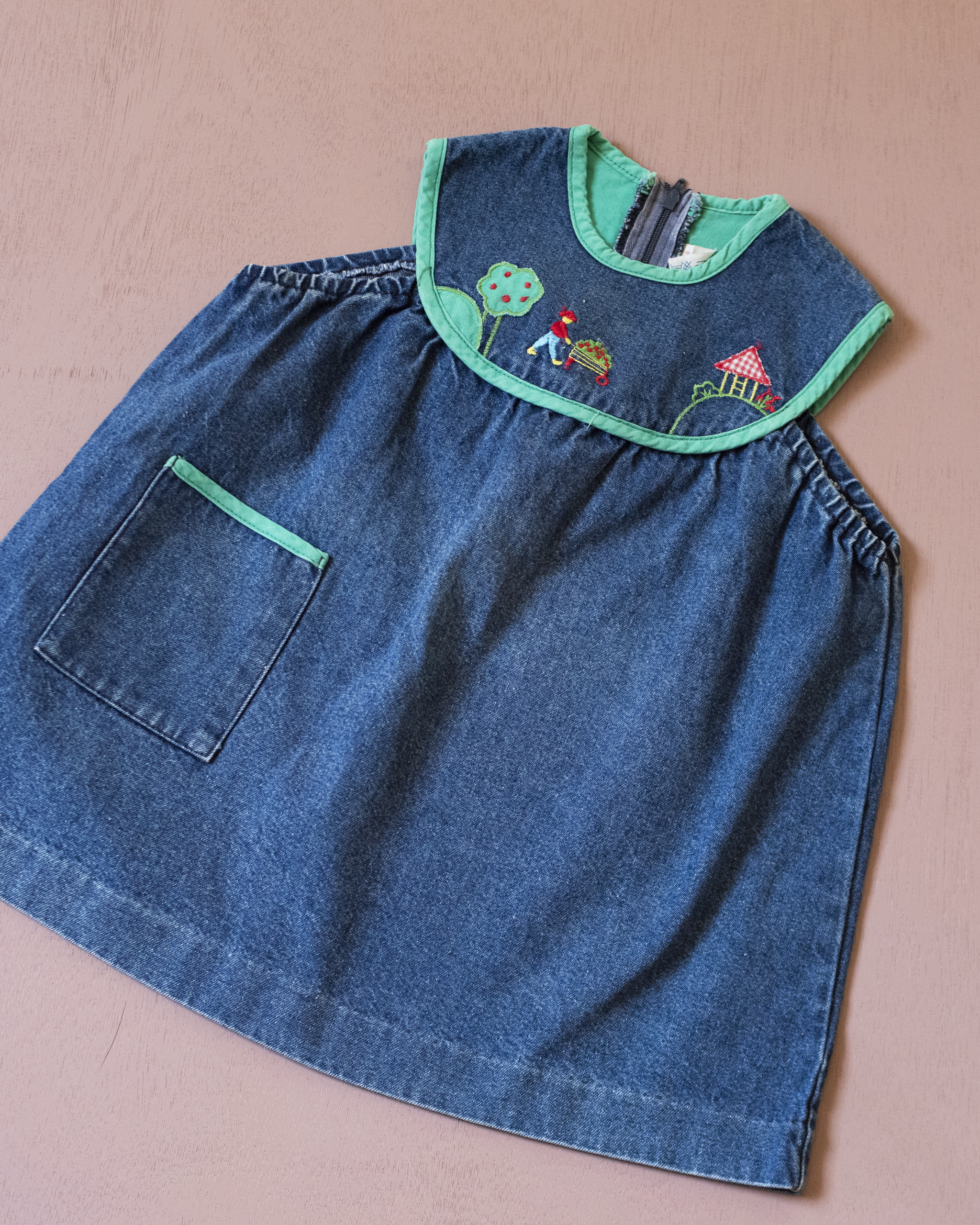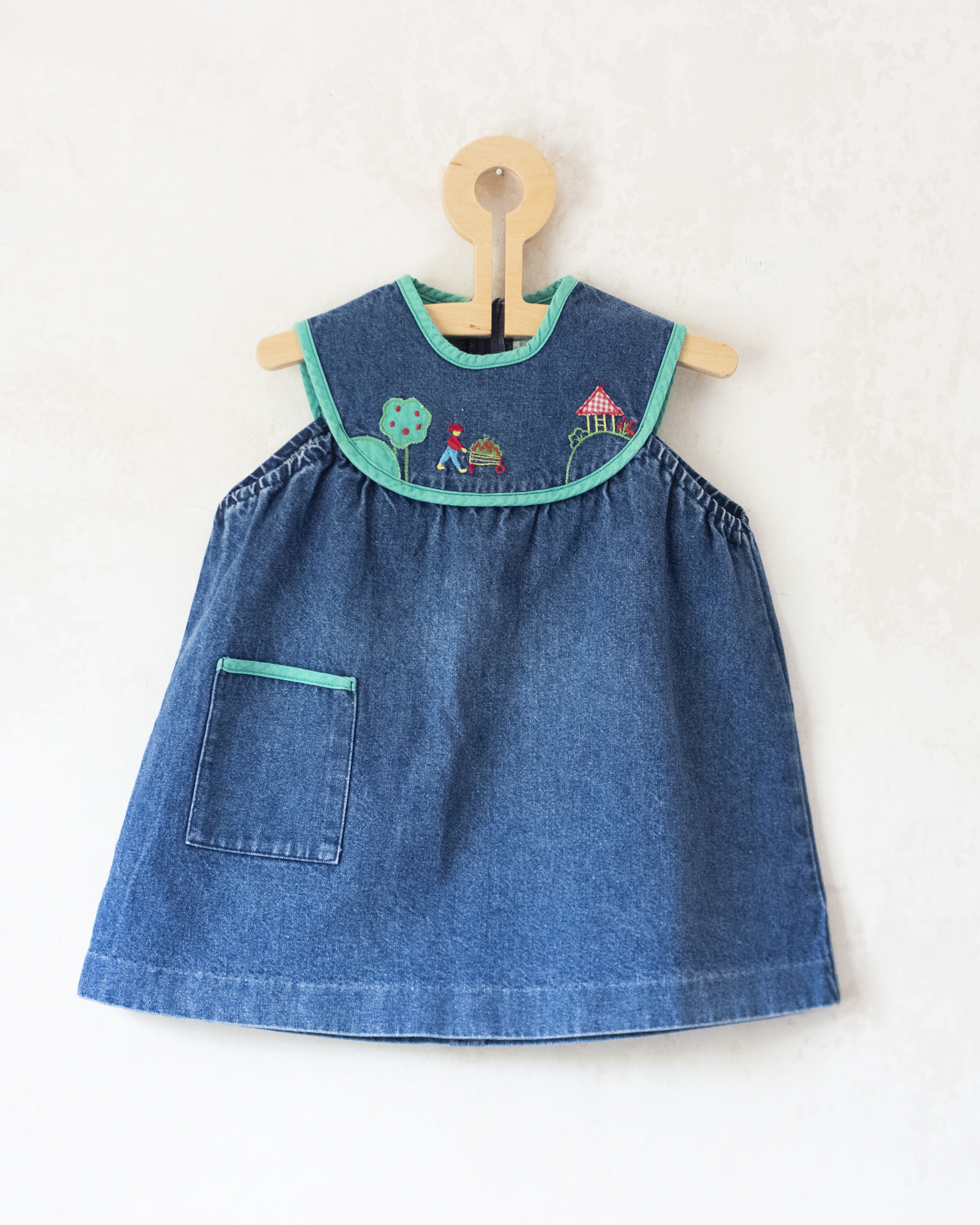 שמלת ג׳ינס עם משבצות | דד סטוק צרפתי מהסבנטיז | 2-3 שנים