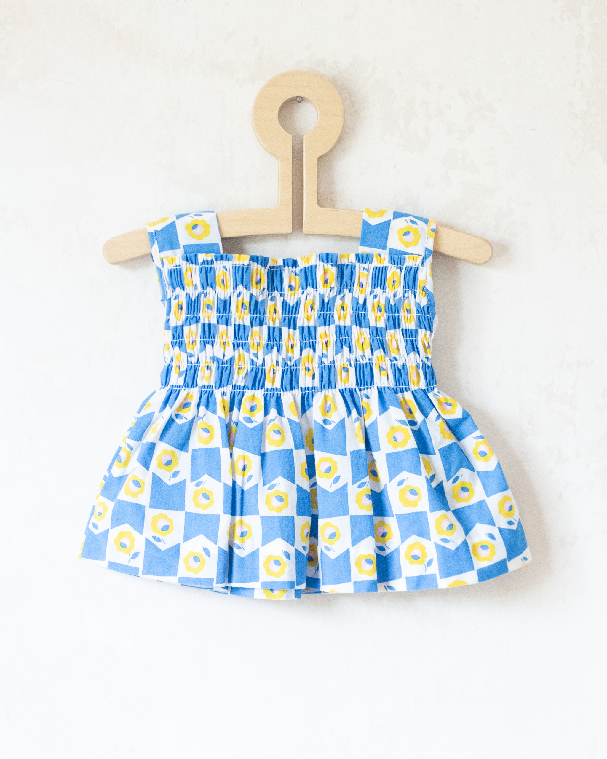 גופיה כחולה מהסבנטיז עם פרחים צהובים | 18-24 חודשים