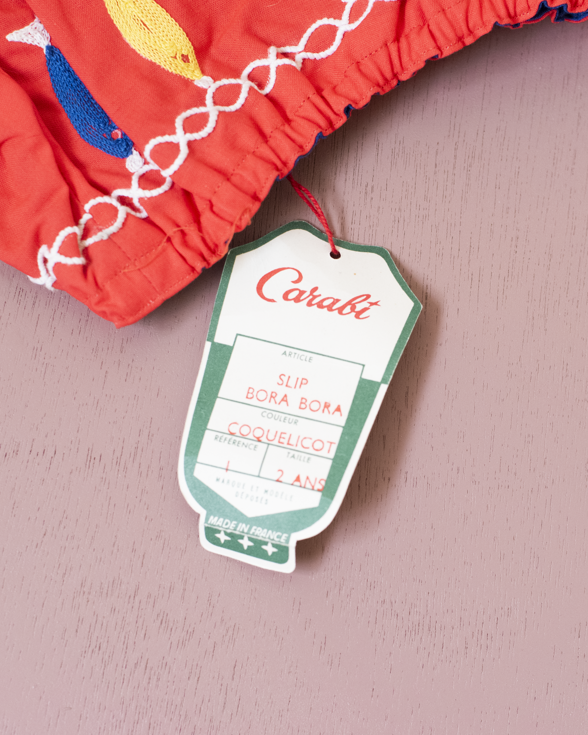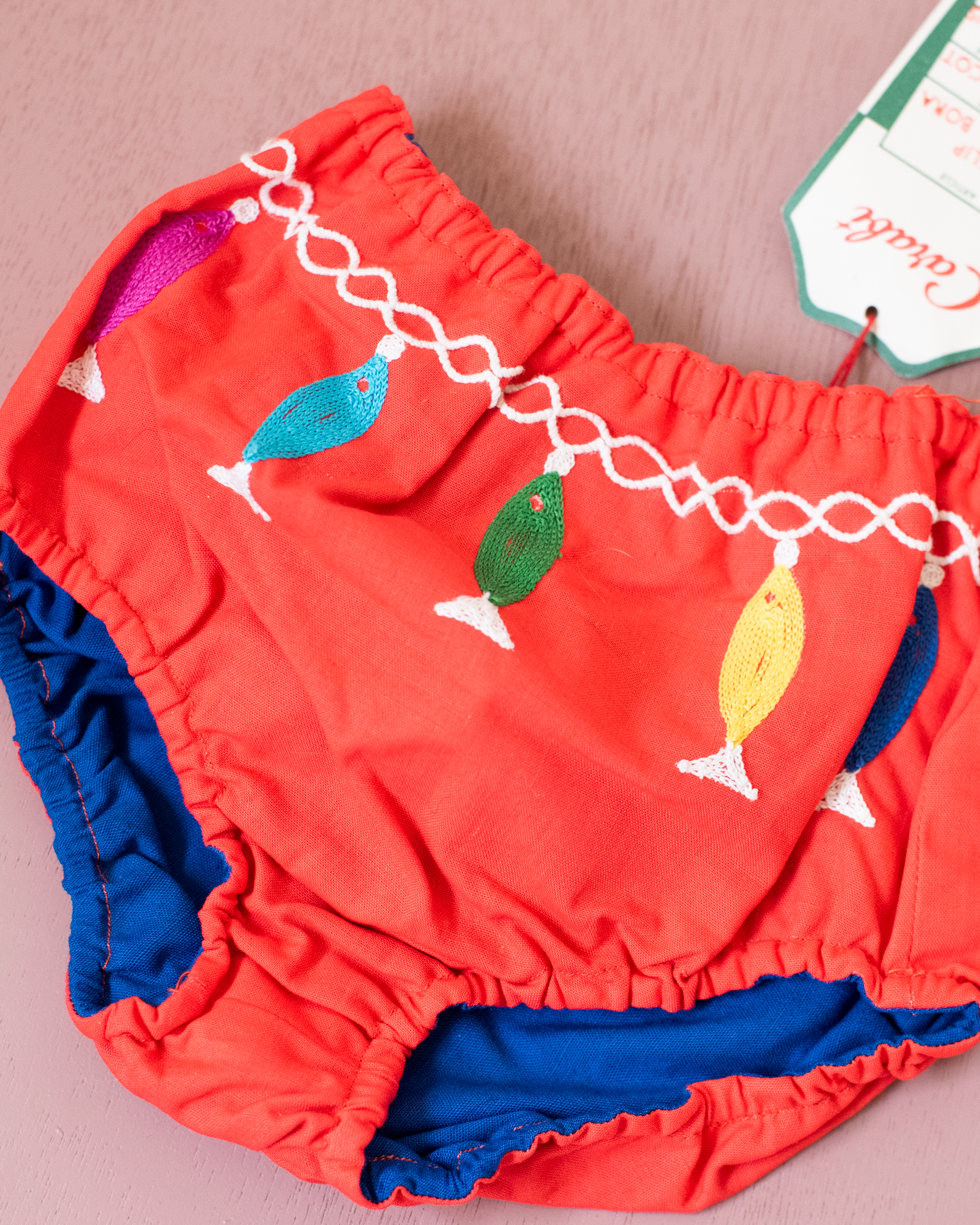 בלומרס אדומים עם דגים צבעוניים | דד סטוק צרפתי מהסיקסטיז | 18-24 חודשים