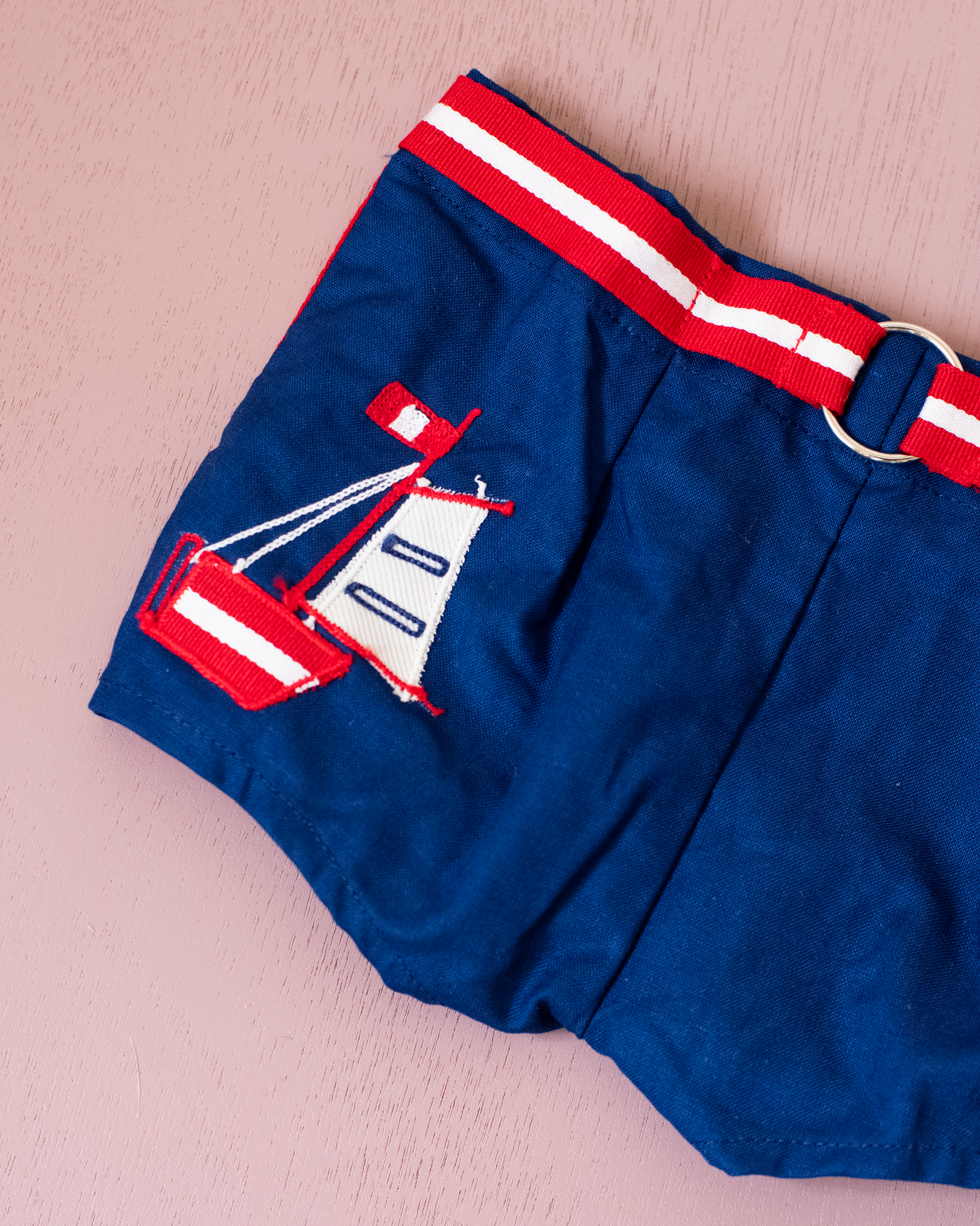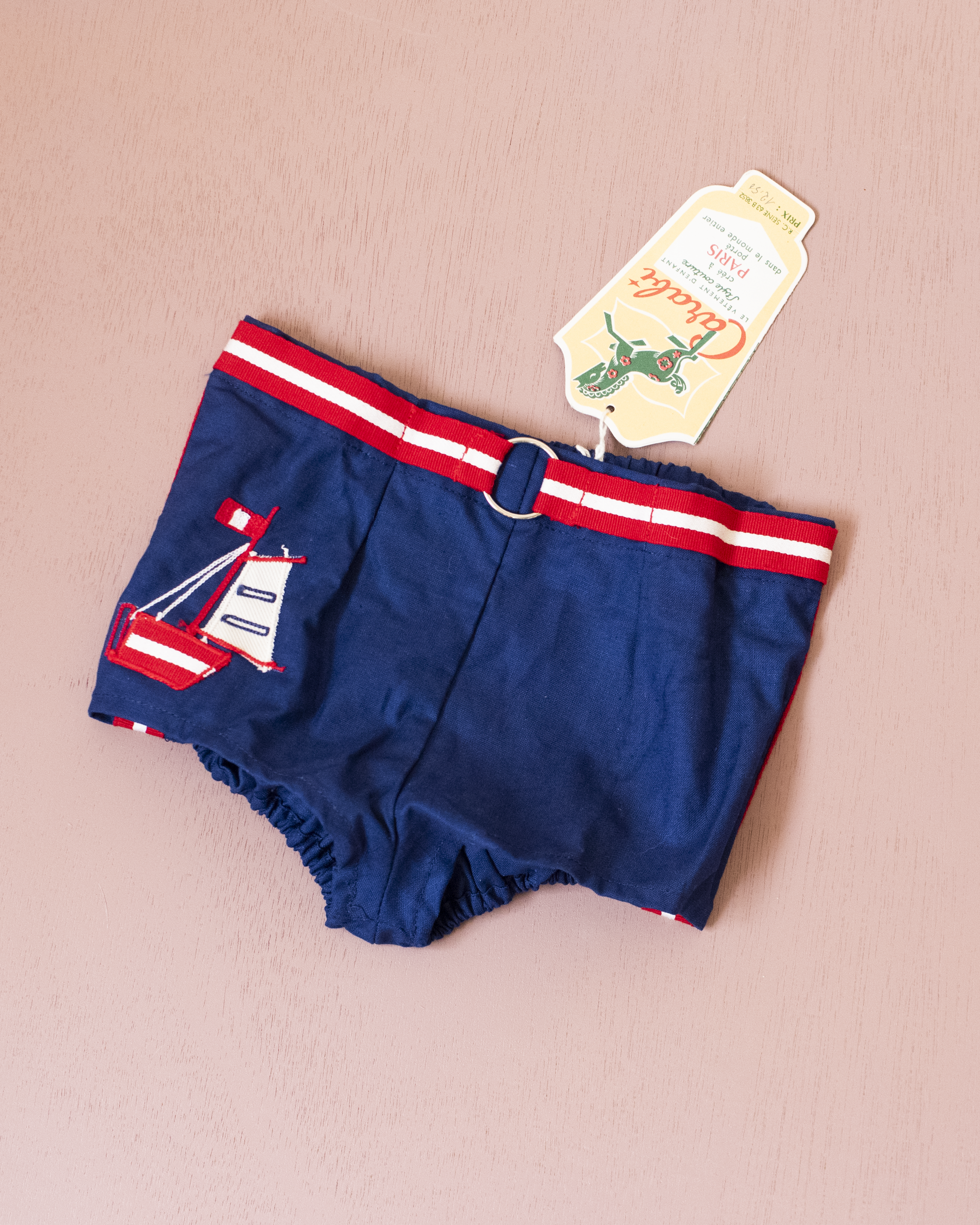 מכנסונים קצרים עם סירת מפרש רקומה | דד סטוק צרפתי משנות ה60 | 3-4 שנים