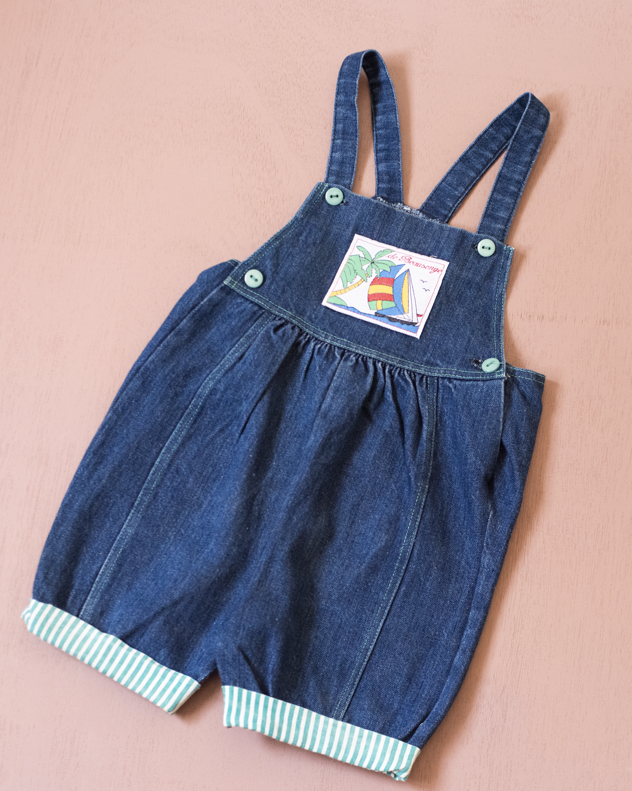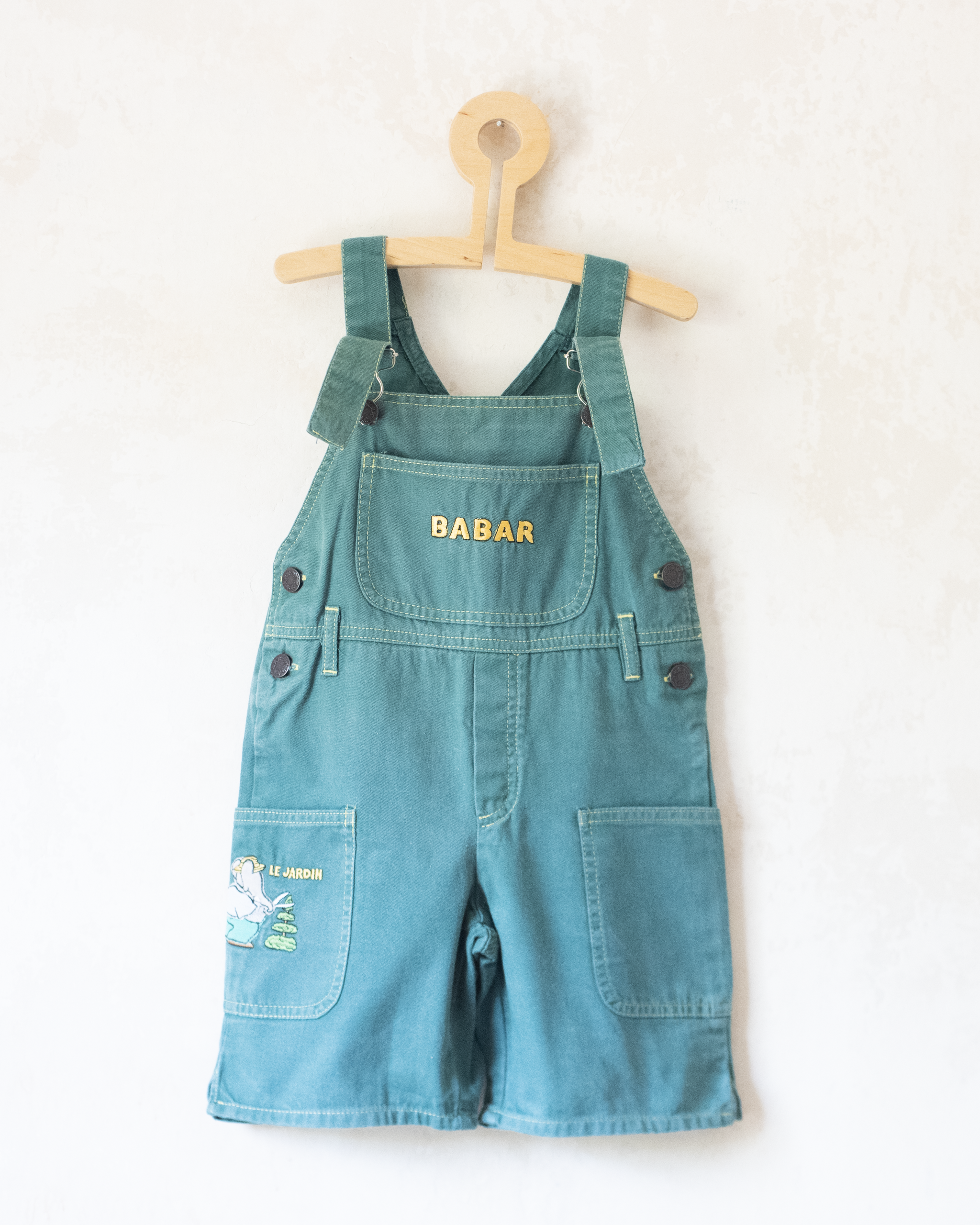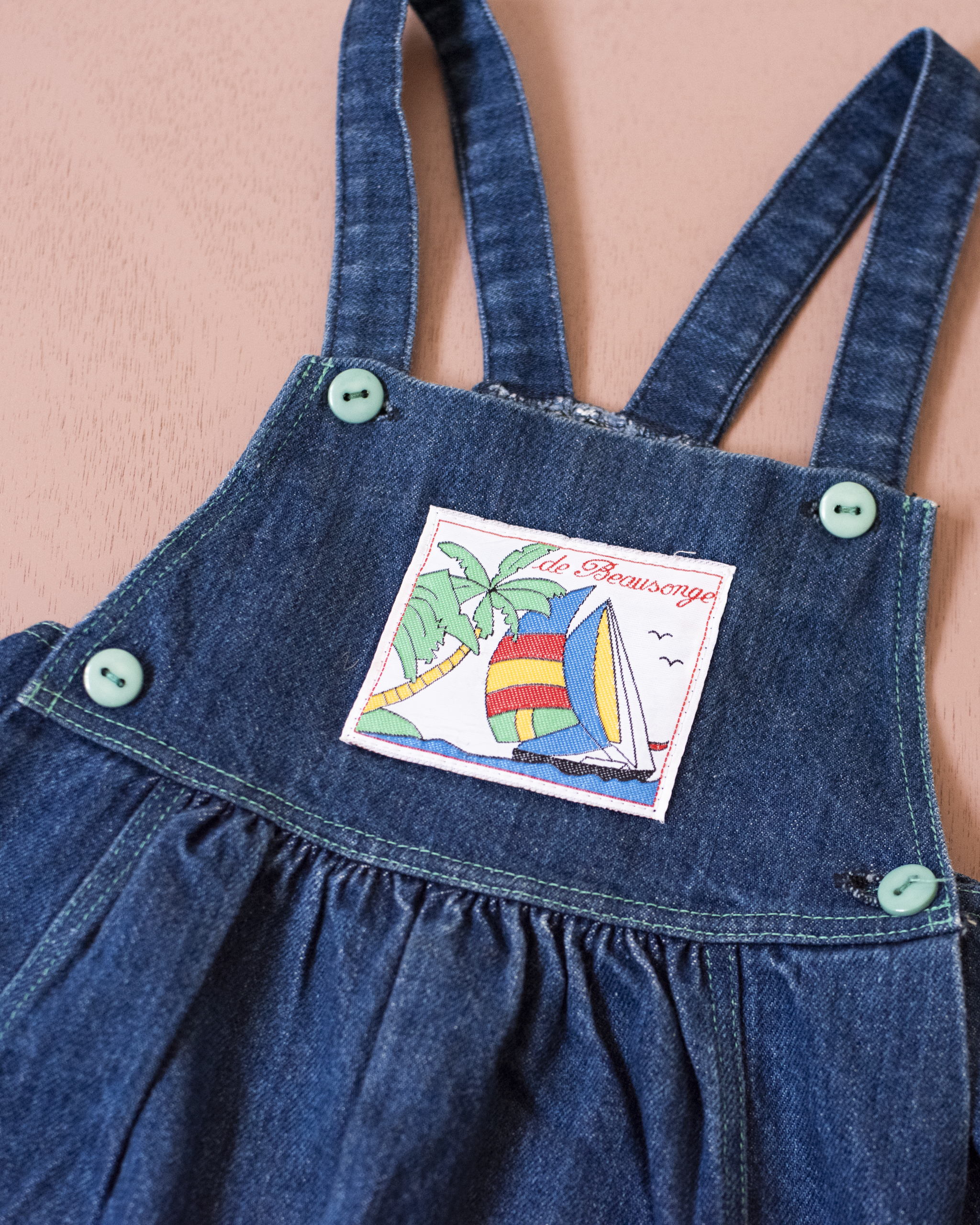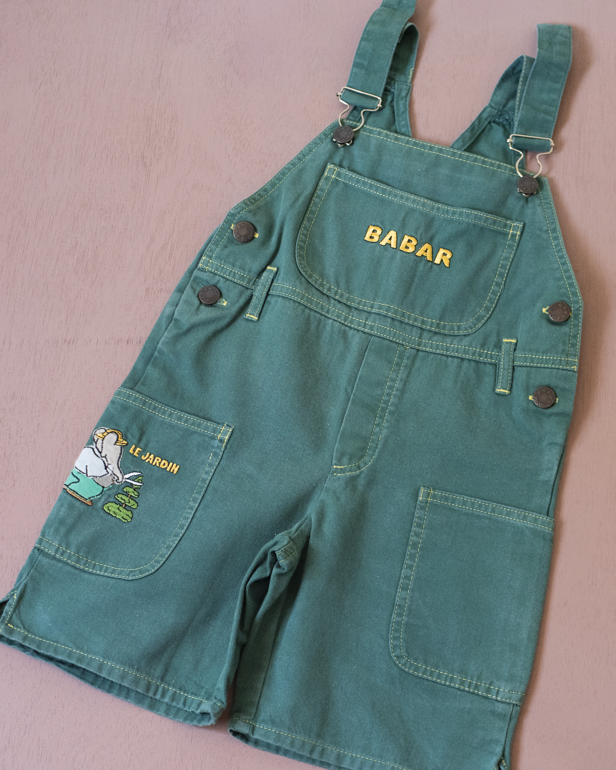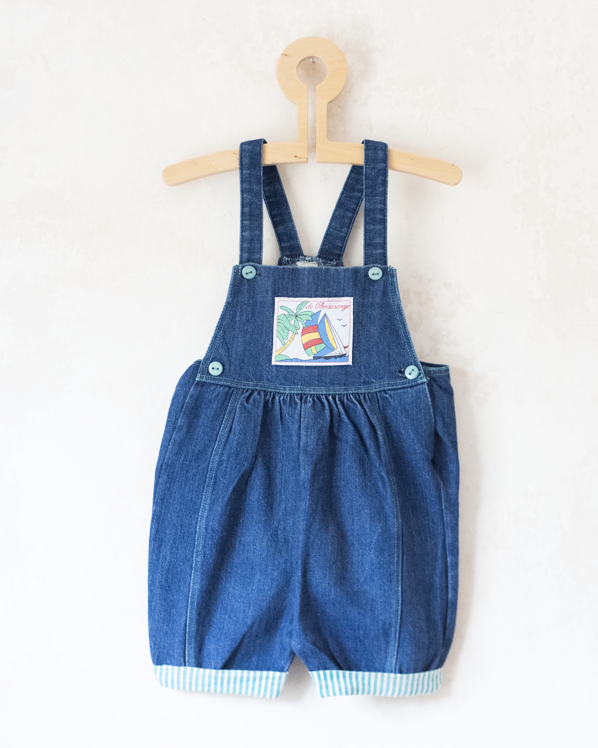 אוברול מבד מגבת עם רקמה של המלך בבר ומצנח | דד סטוק צרפתי מהסבנטיז | 2-3 שנים