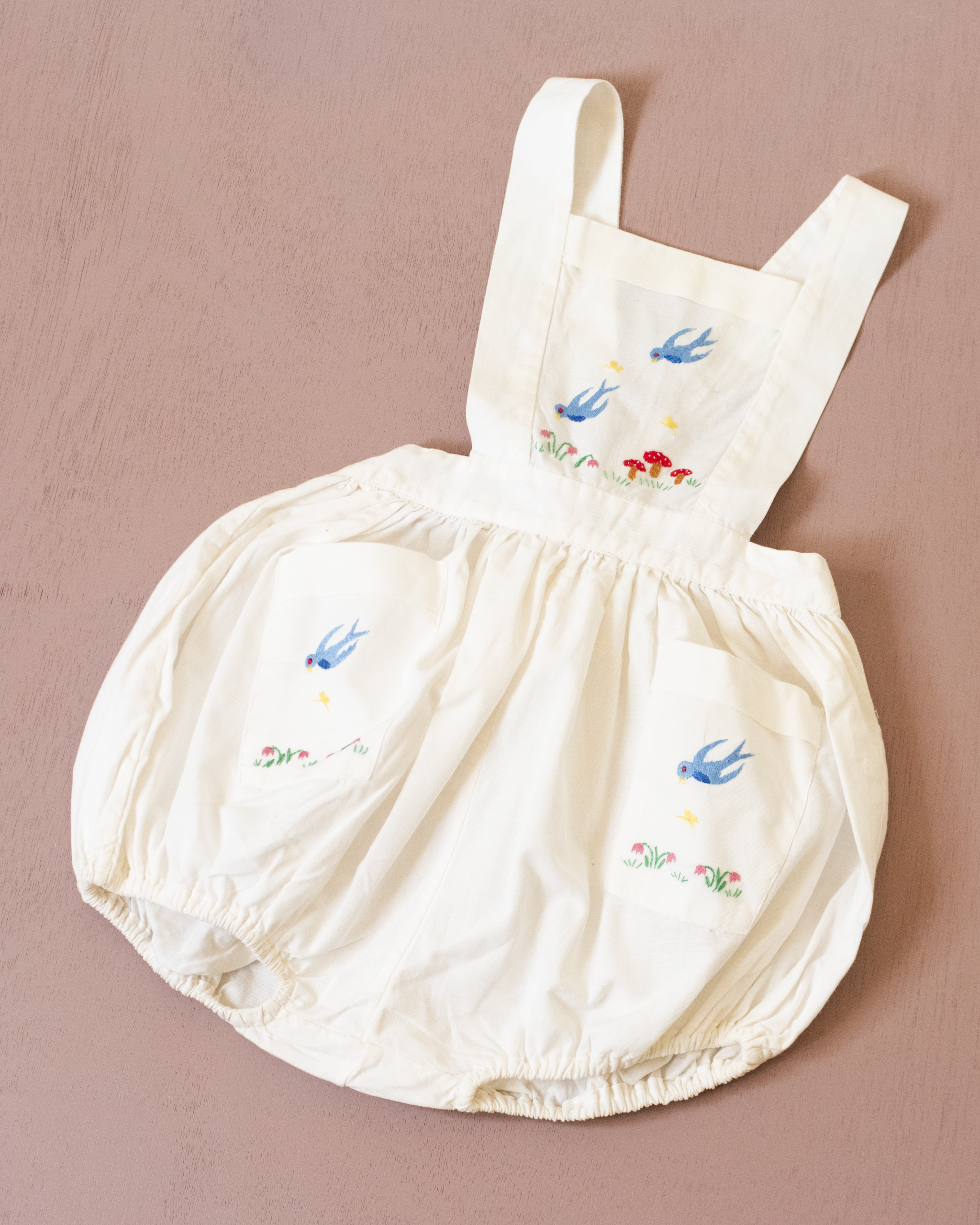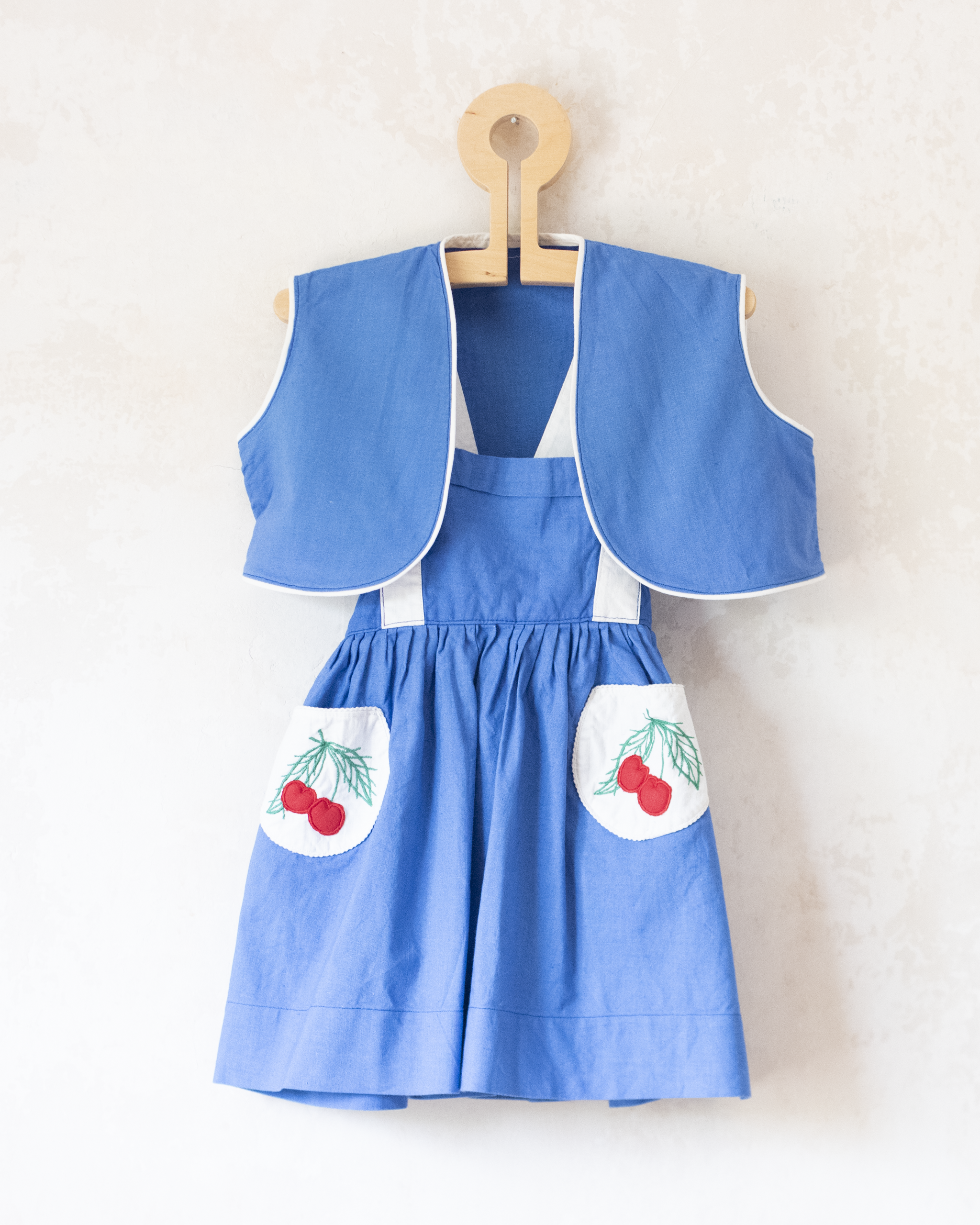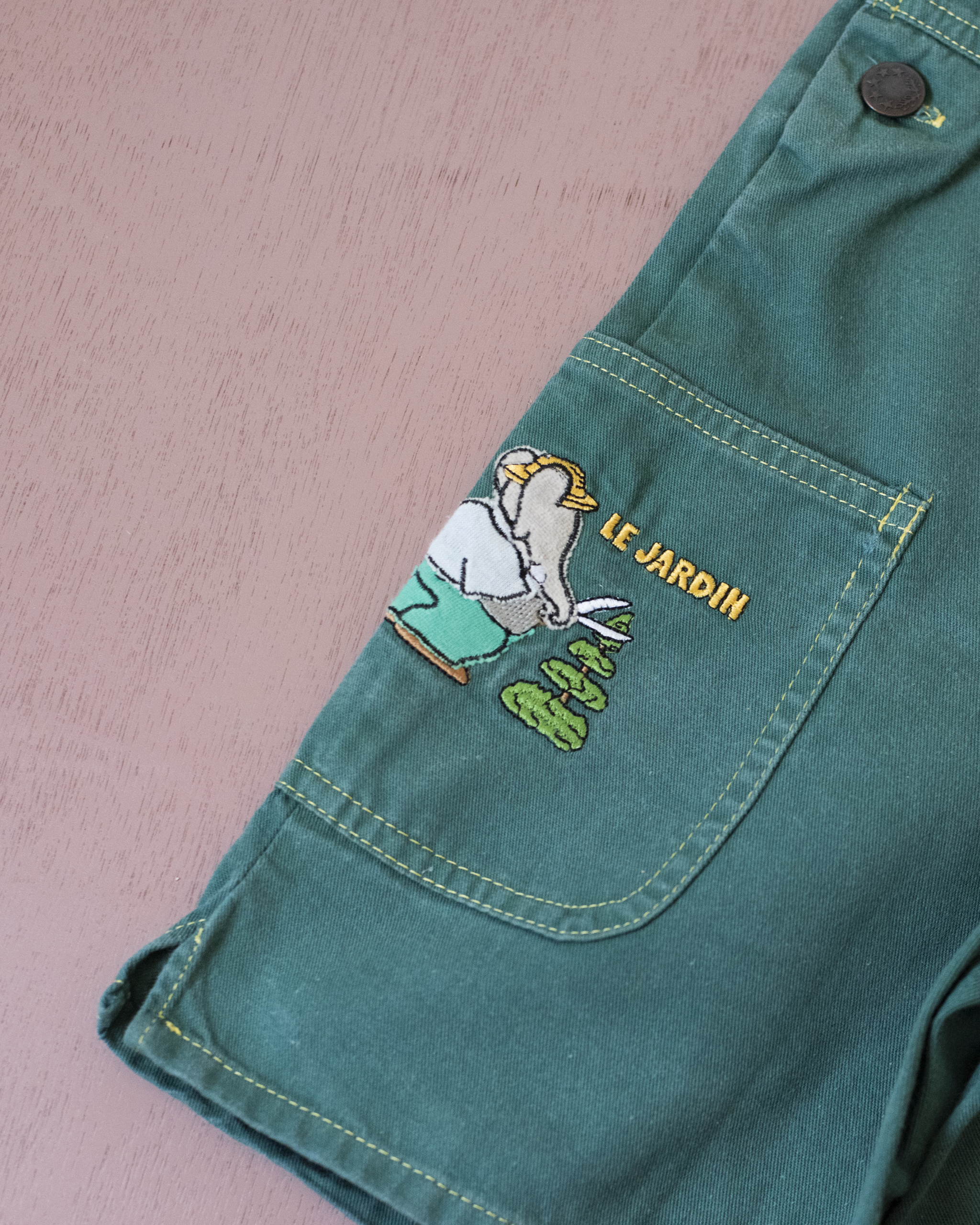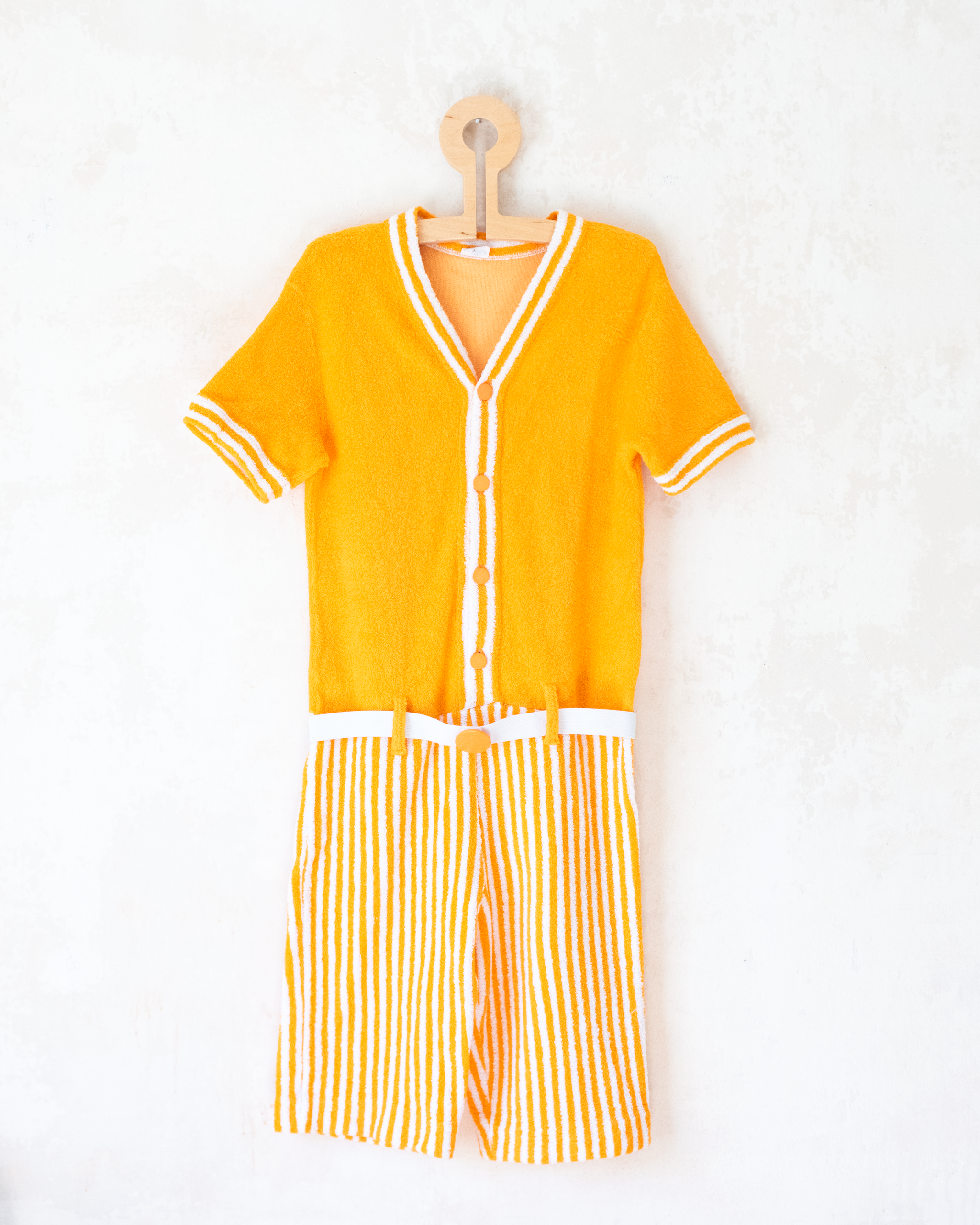 אוברול מבד מגבת עם רקמה של המלך בבר ומצנח | דד סטוק צרפתי מהסבנטיז | 2-3 שנים