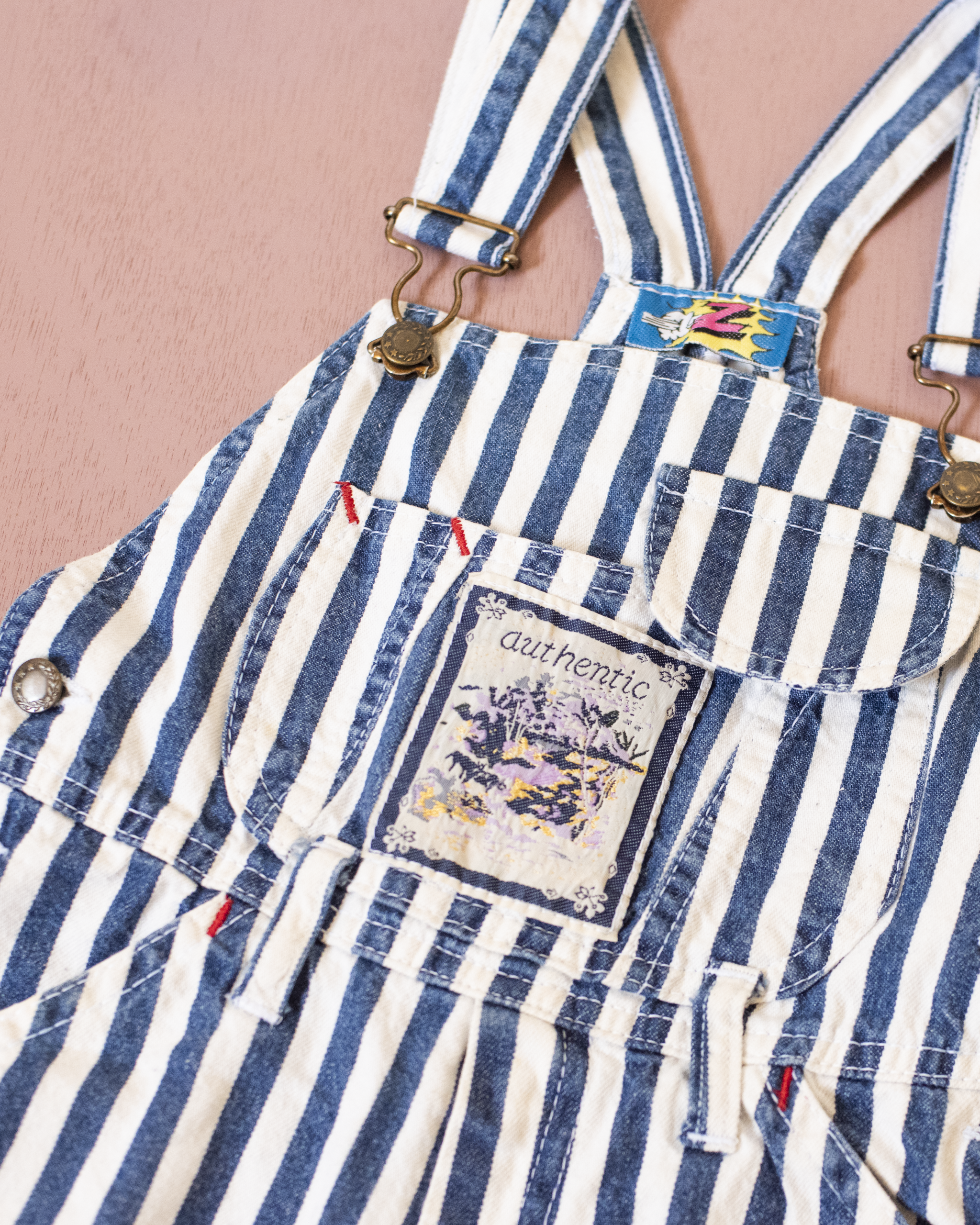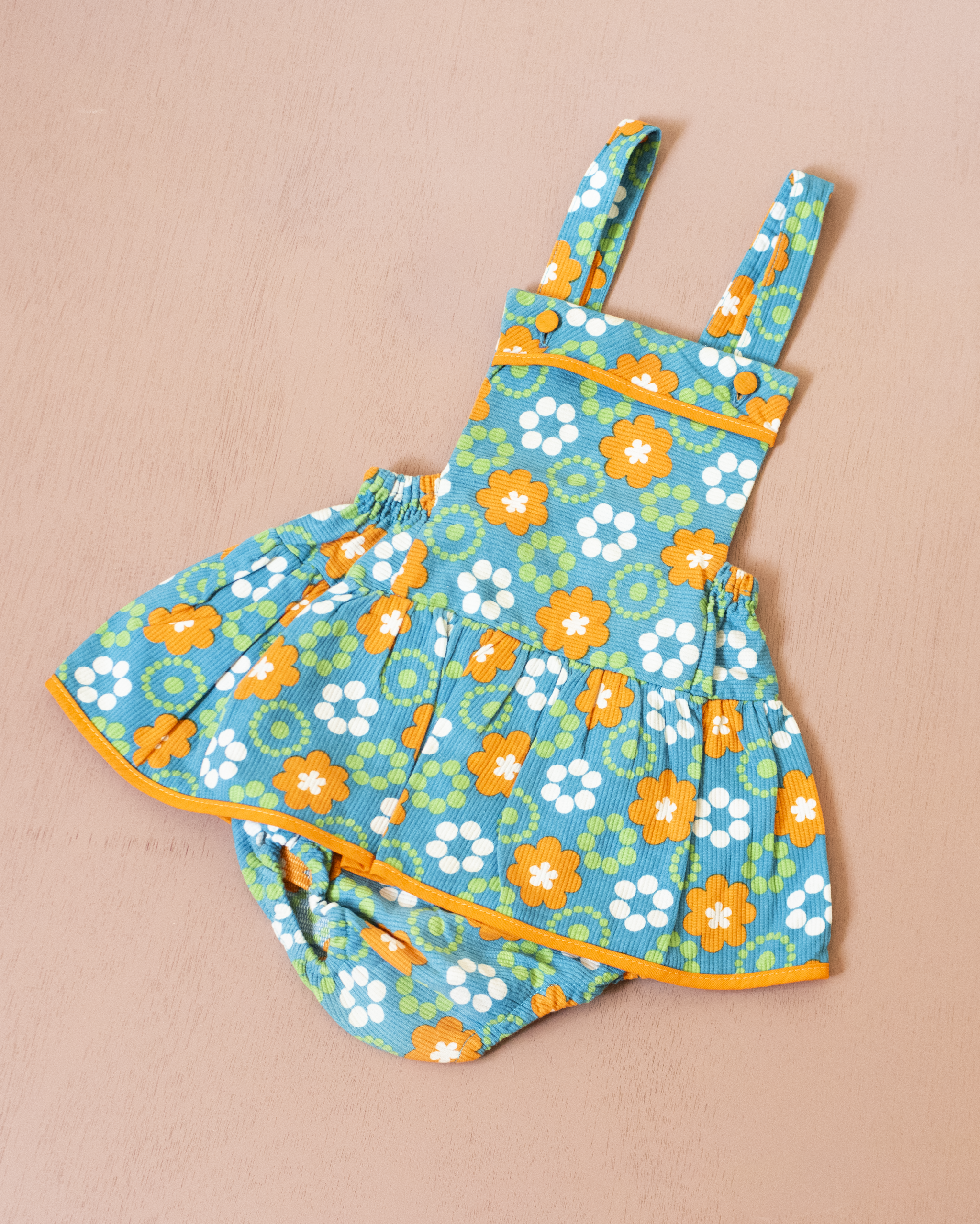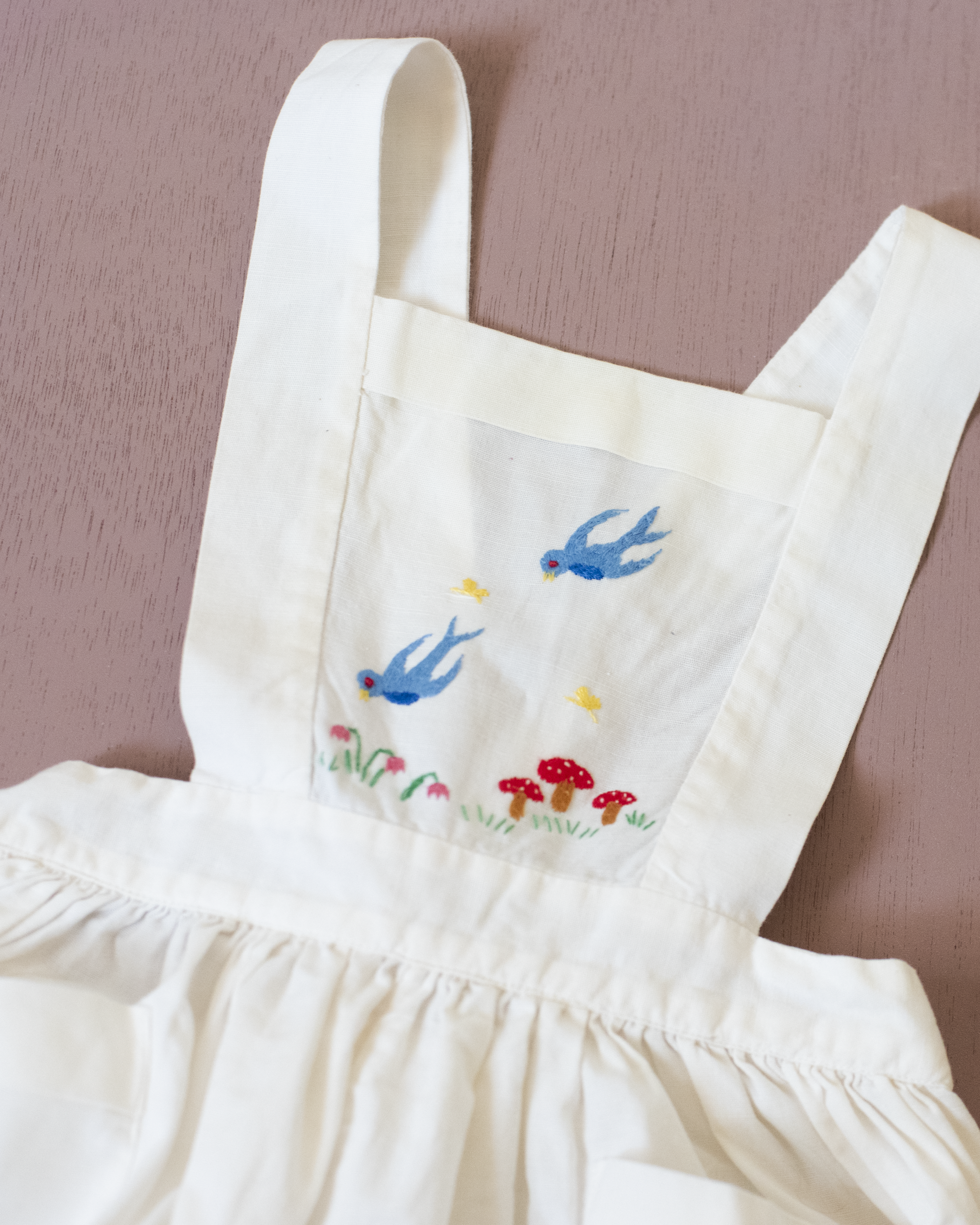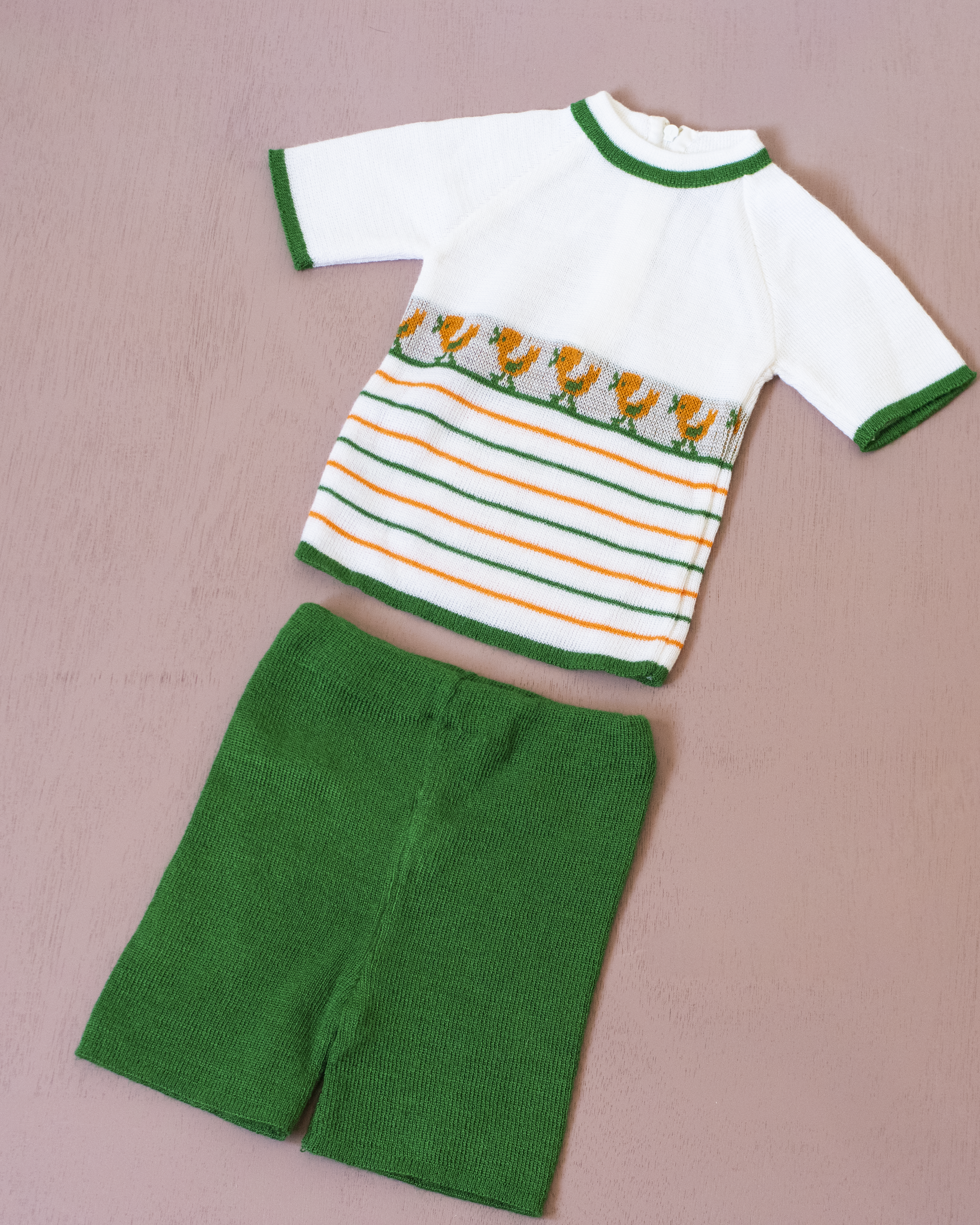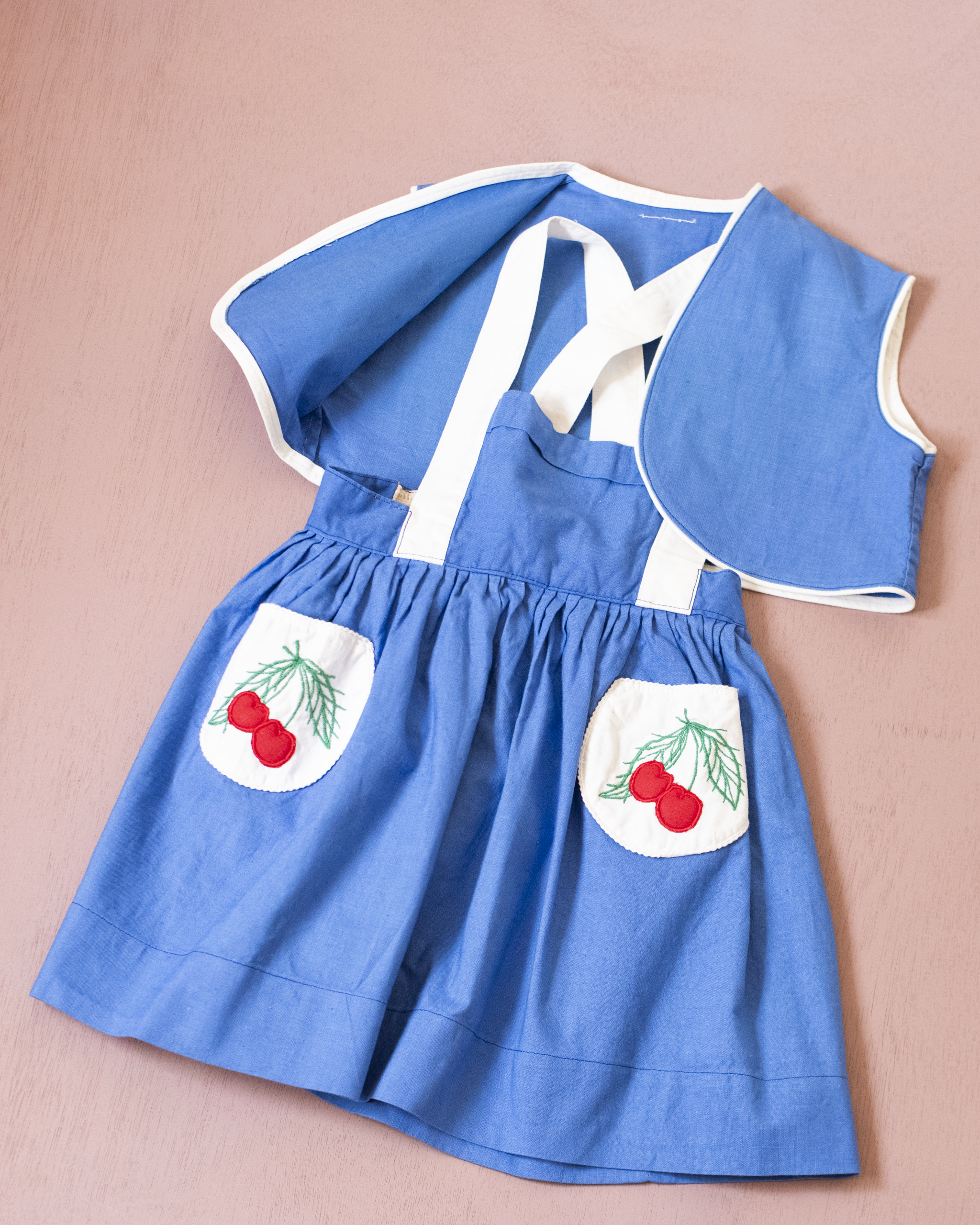 אוברול מבד מגבת עם רקמה של המלך בבר ומצנח | דד סטוק צרפתי מהסבנטיז | 2-3 שנים