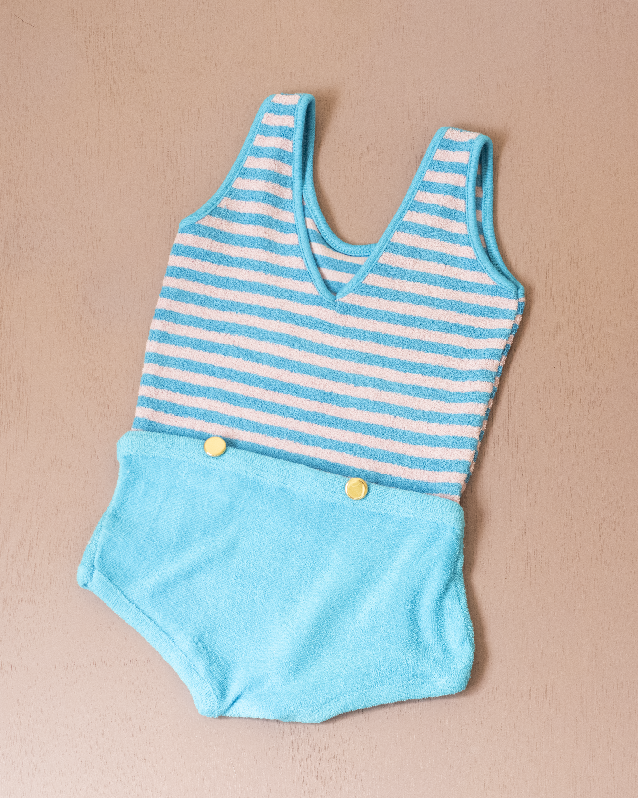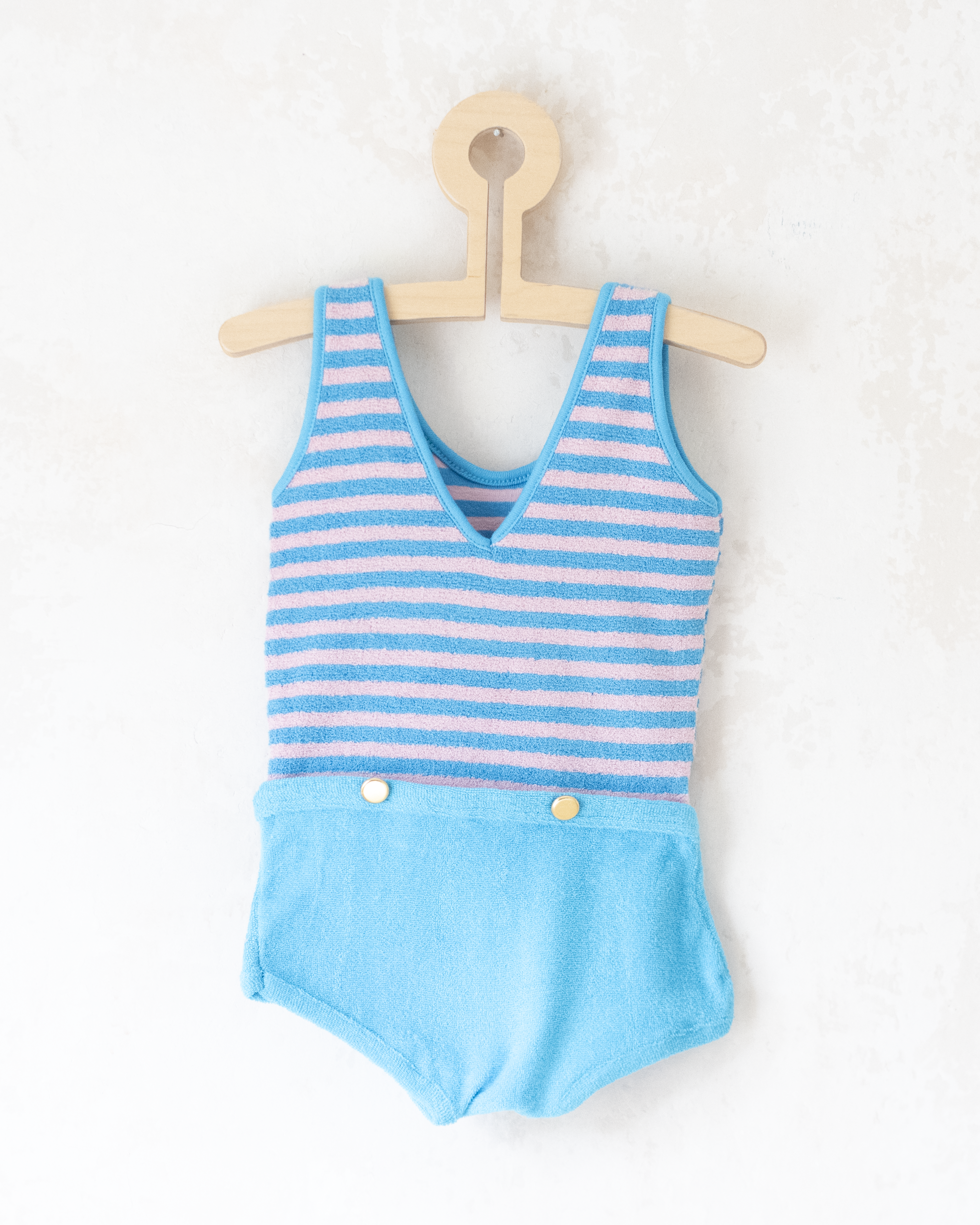 אוברול צמר בתכלת ולבן | 3-6 חודשים