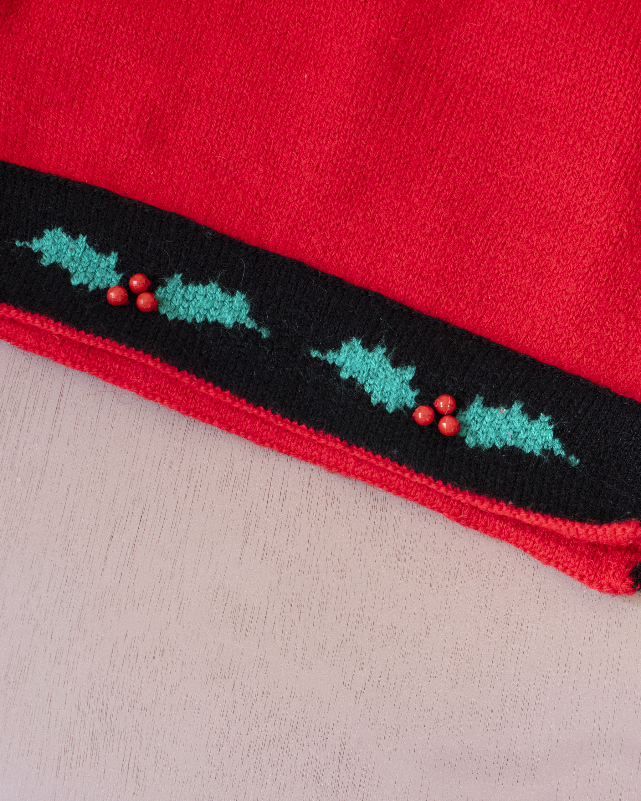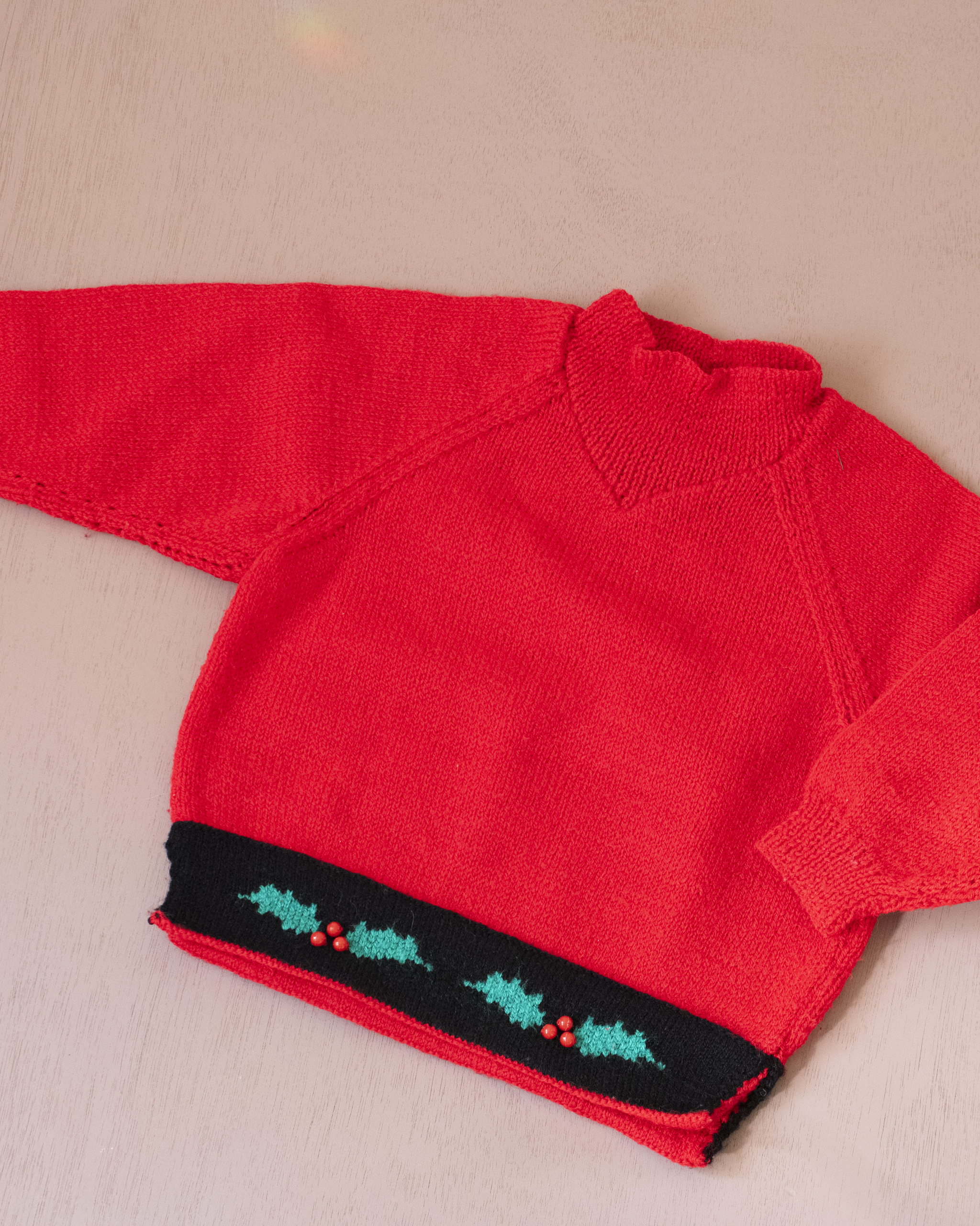 סוודר צמר אדום עם צמח חג המולד | 3-4 שנים