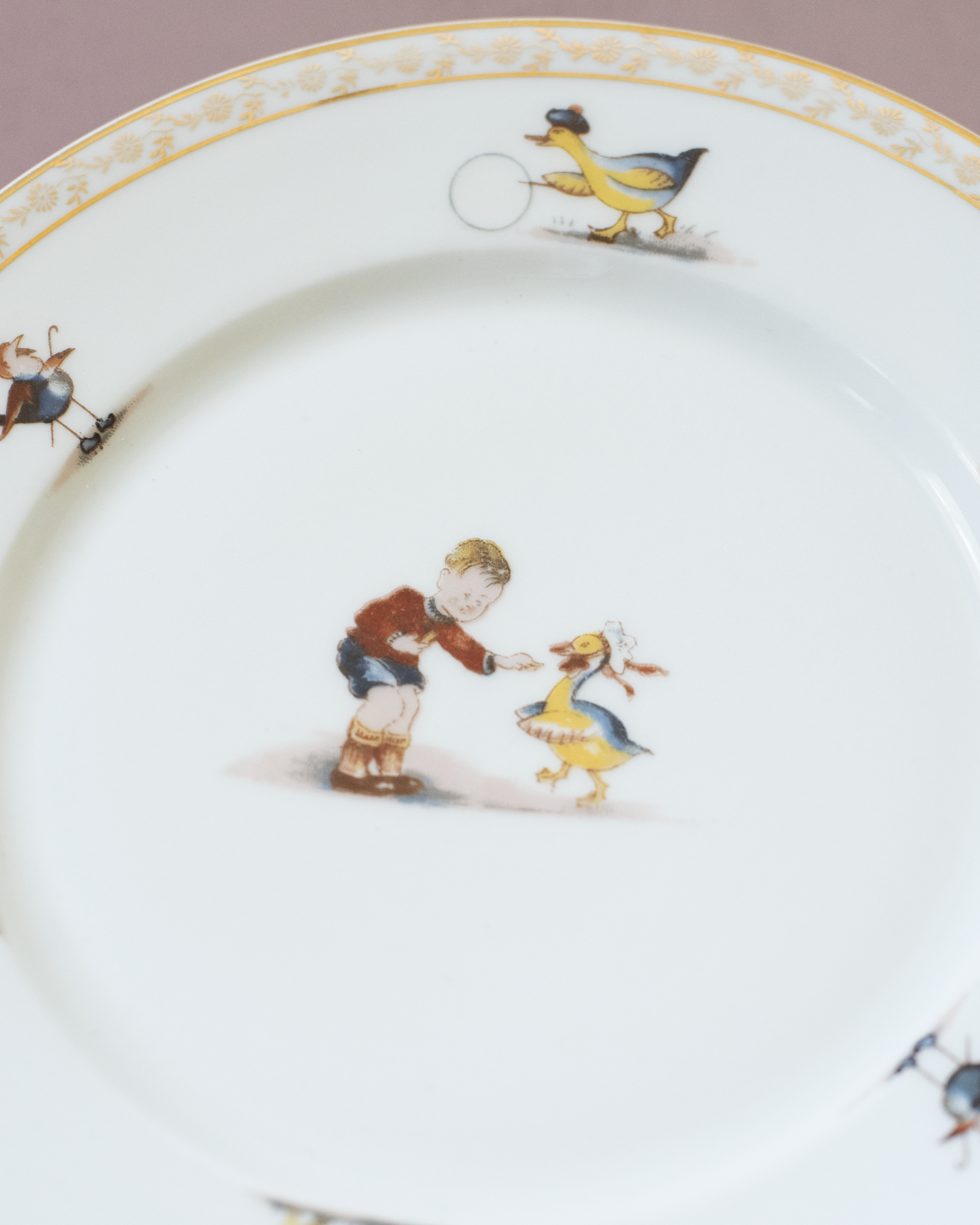 צלחת פורצלן עם ילד ובעלי חיים