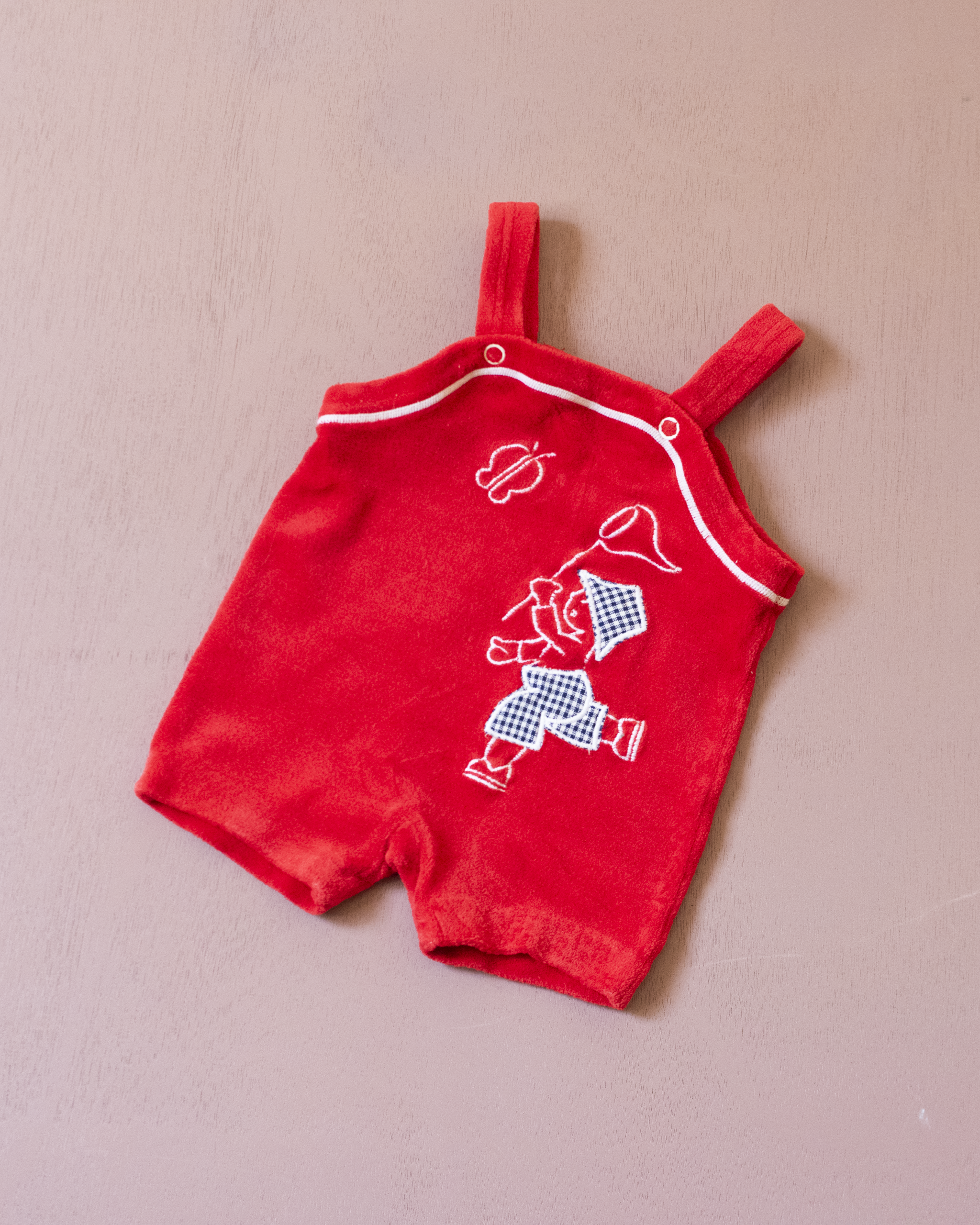 רומפר אדום מהסבנטיז עם משבצות | 2-3 שנים