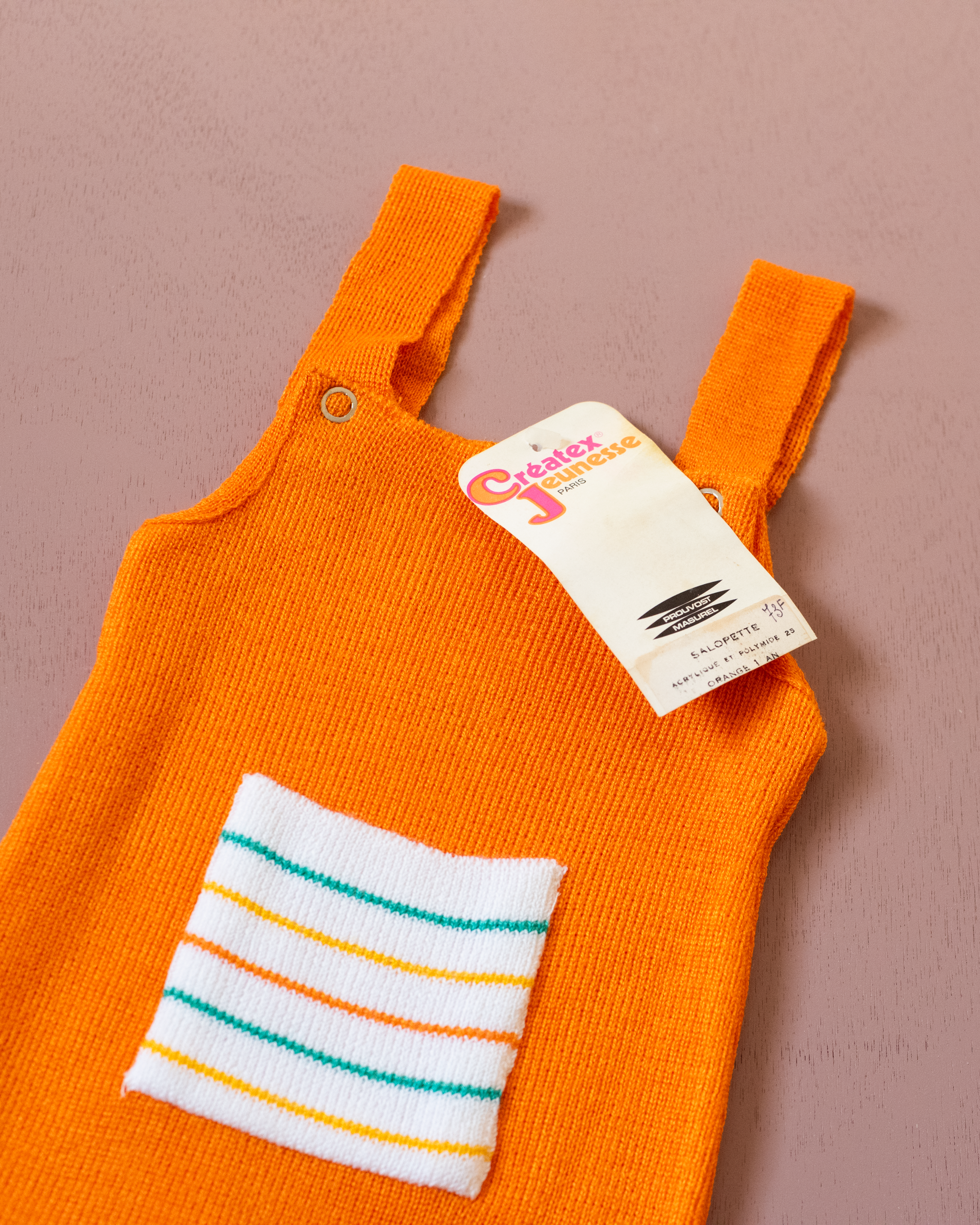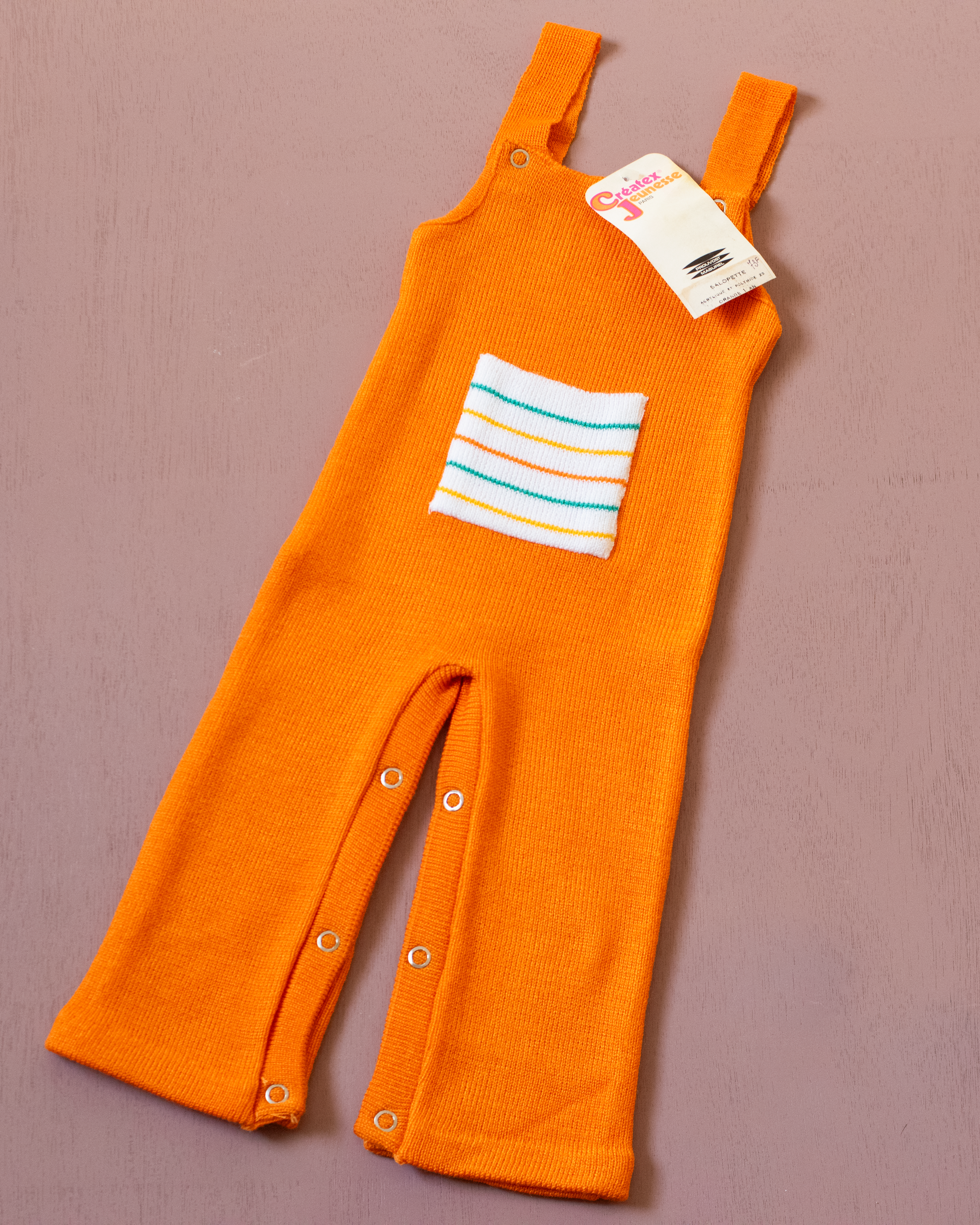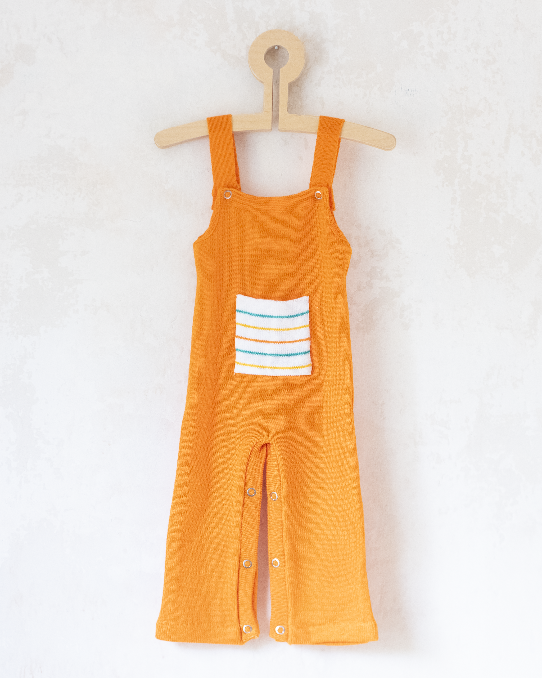 אוברול צמר כתום עם כיס | דד סטוק צרפתי | 9-12 חודשים