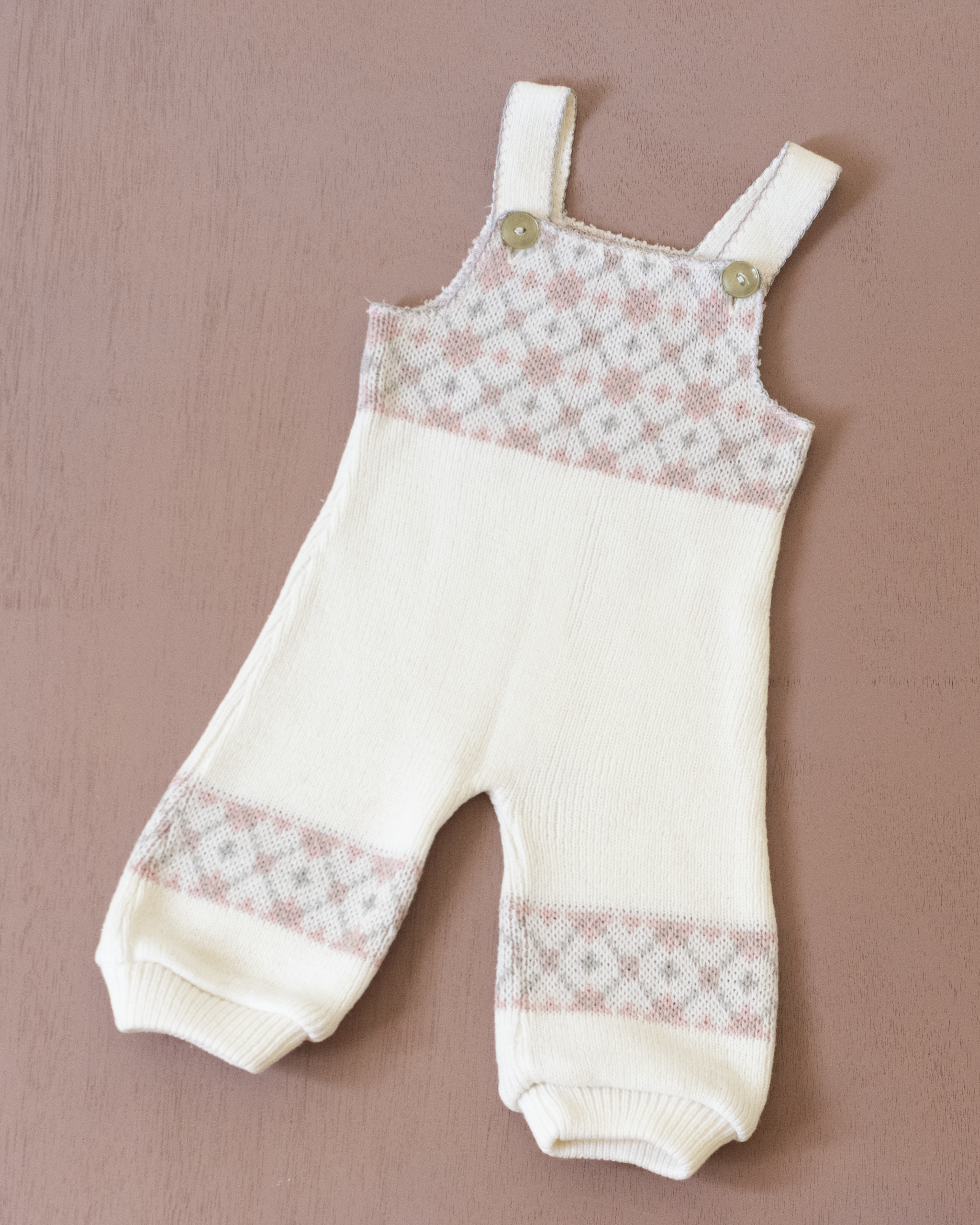 אוברול צמר לבן עם משבצות | 3-6 חודשים