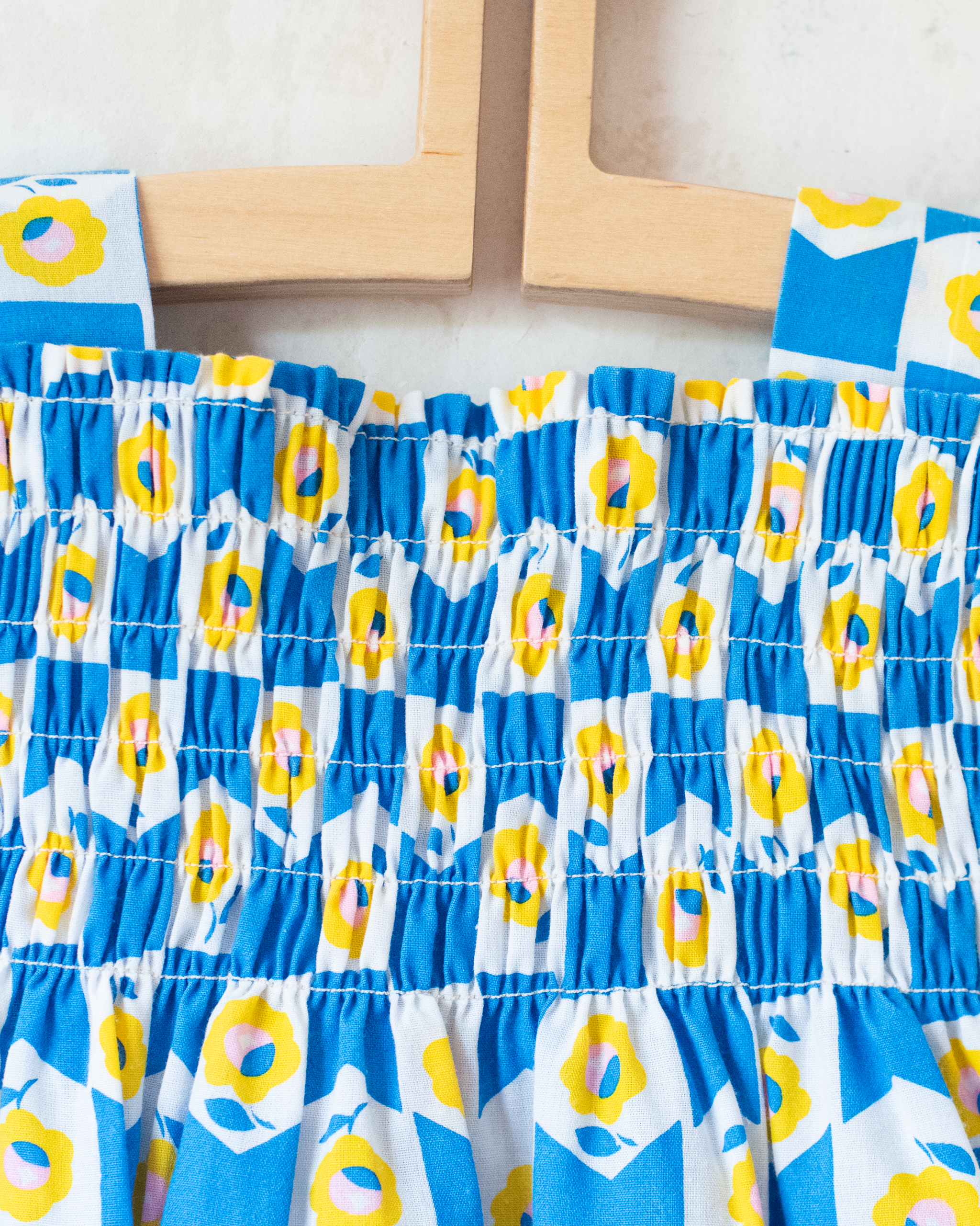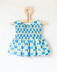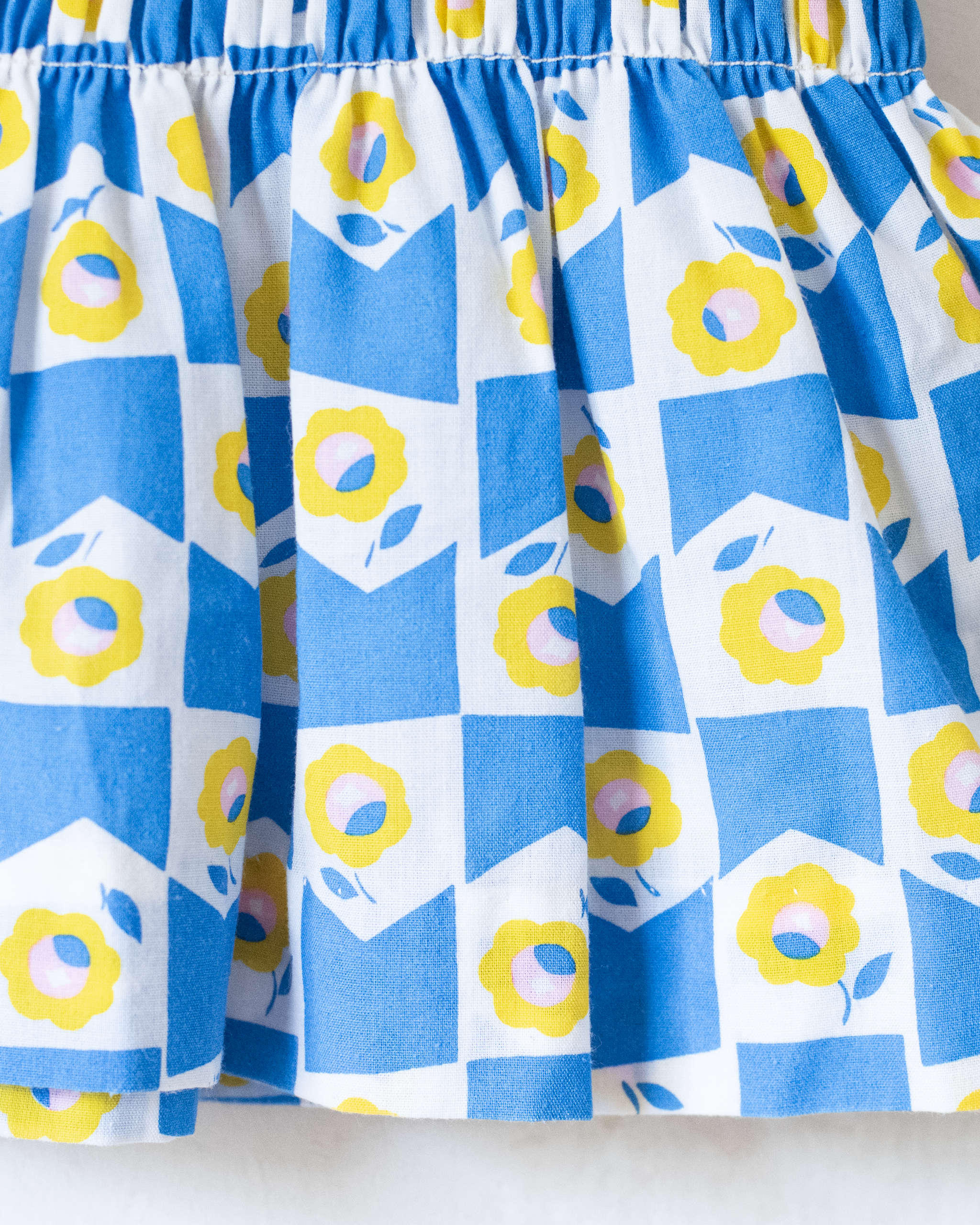 גופיה כחולה מהסבנטיז עם פרחים צהובים | 18-24 חודשים