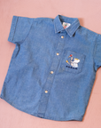 חולצת כותנה קצרה בצבע ג׳ינס עם צווארון וכפתורים לאורכה