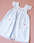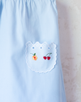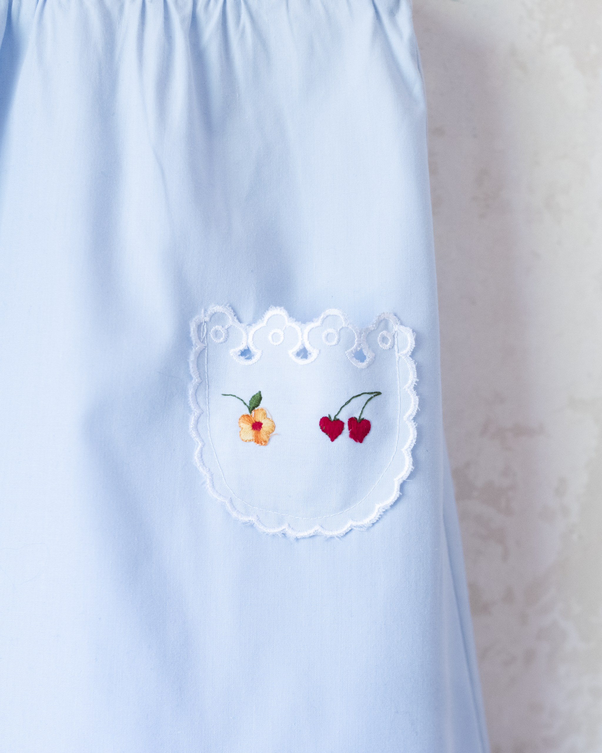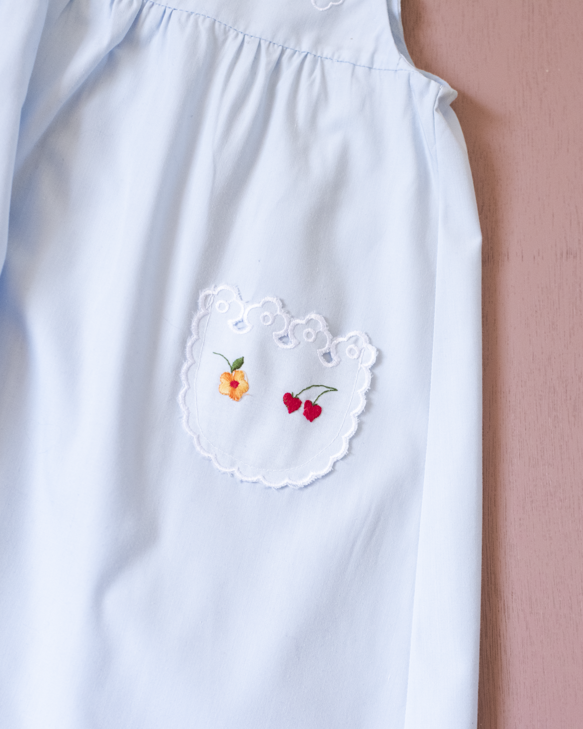 שמלה בתכלת עם פרחים ופירות רקומים | 3-4 שנים